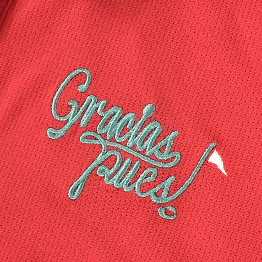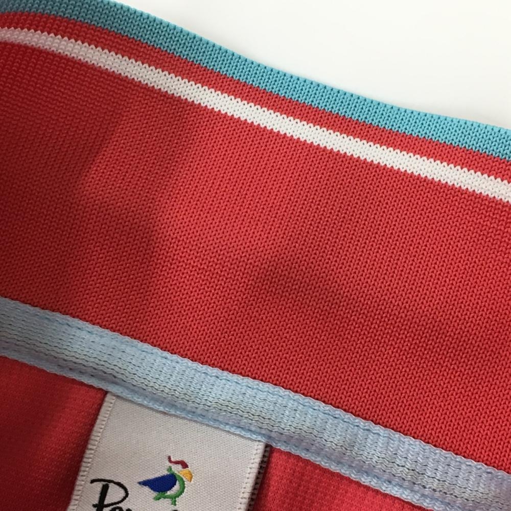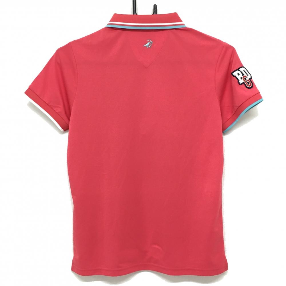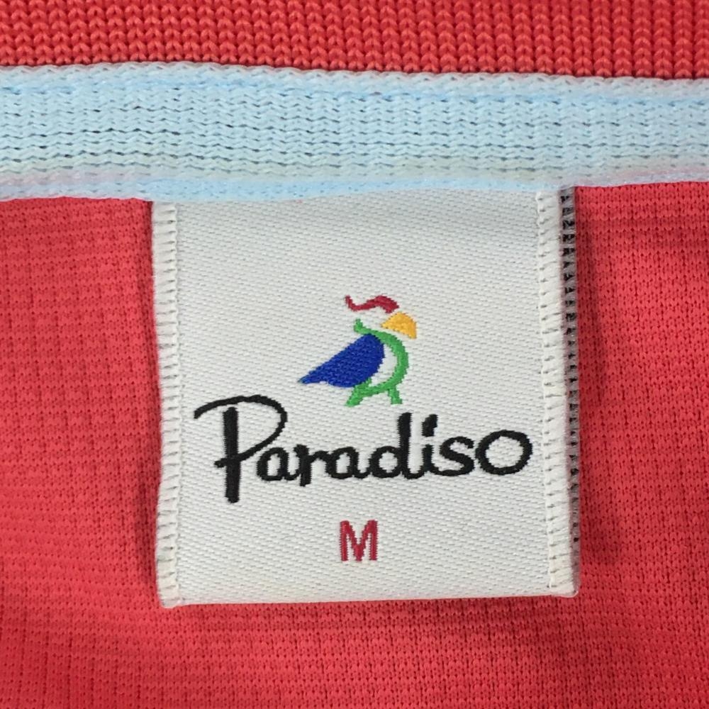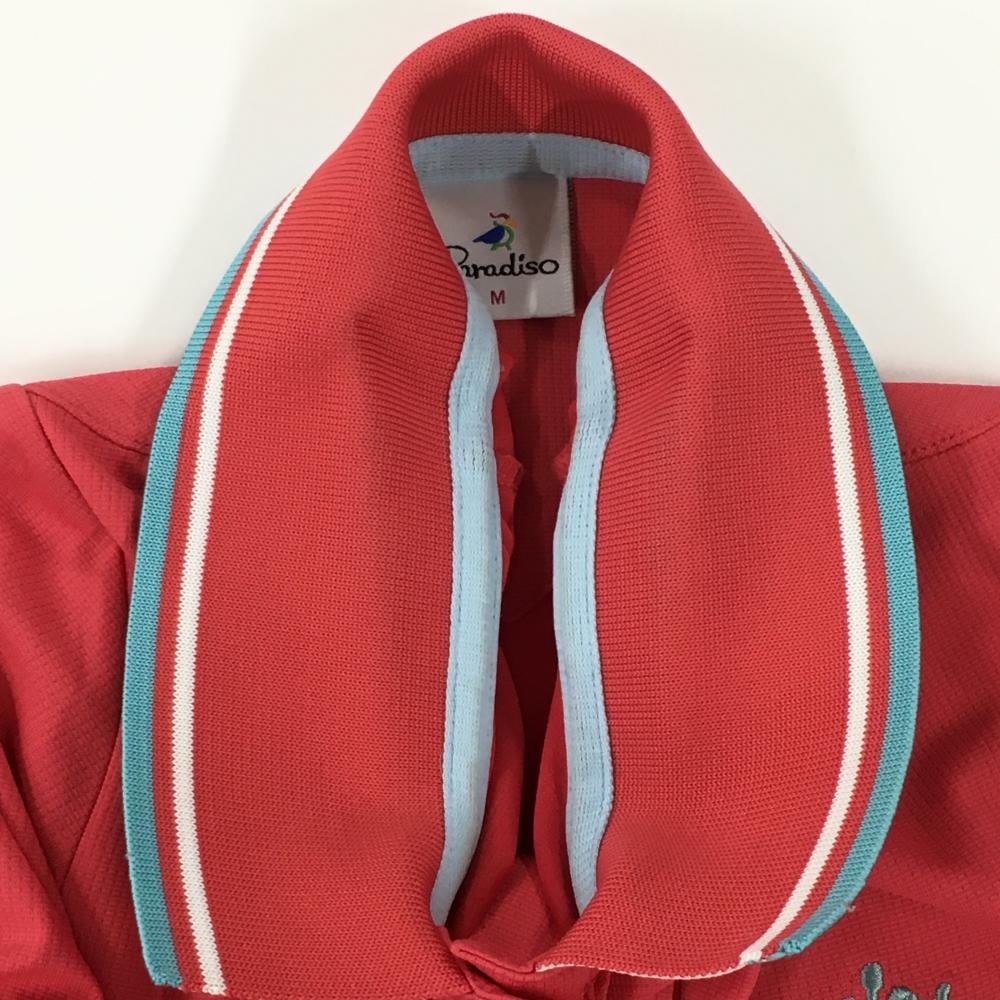 【美品】パラディーゾ 半袖ポロシャツ ピンク×ライトブルー 胸元刺しゅう 袖ワッペン レディース M ゴルフウェア Paradiso