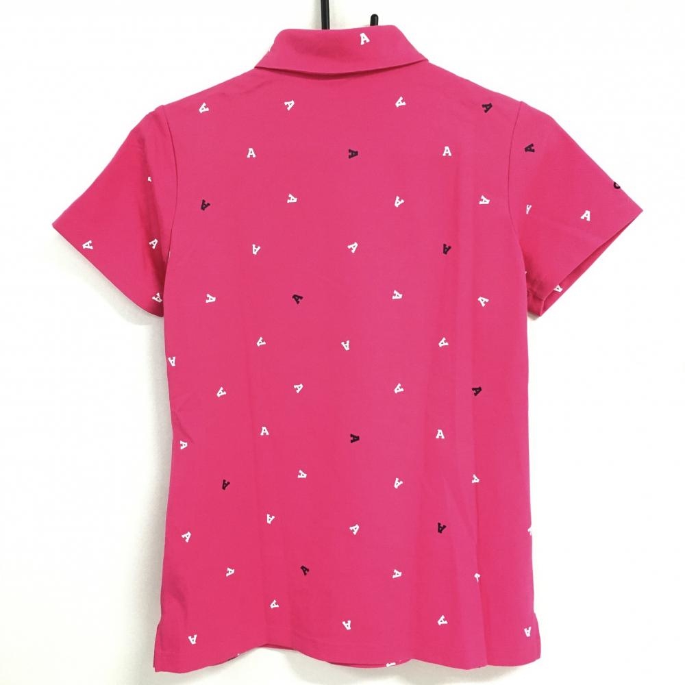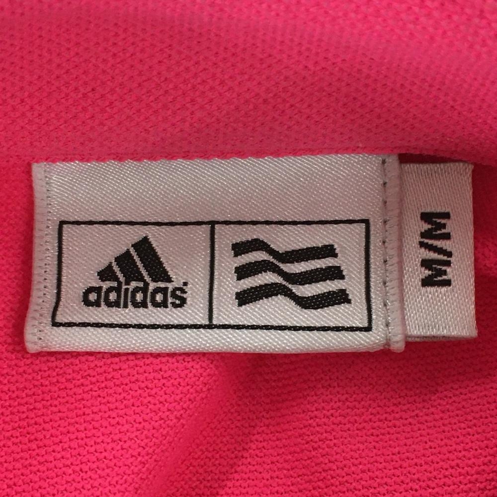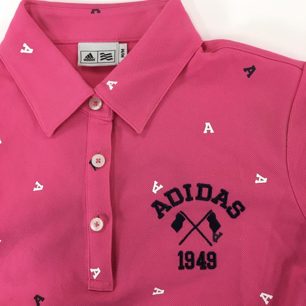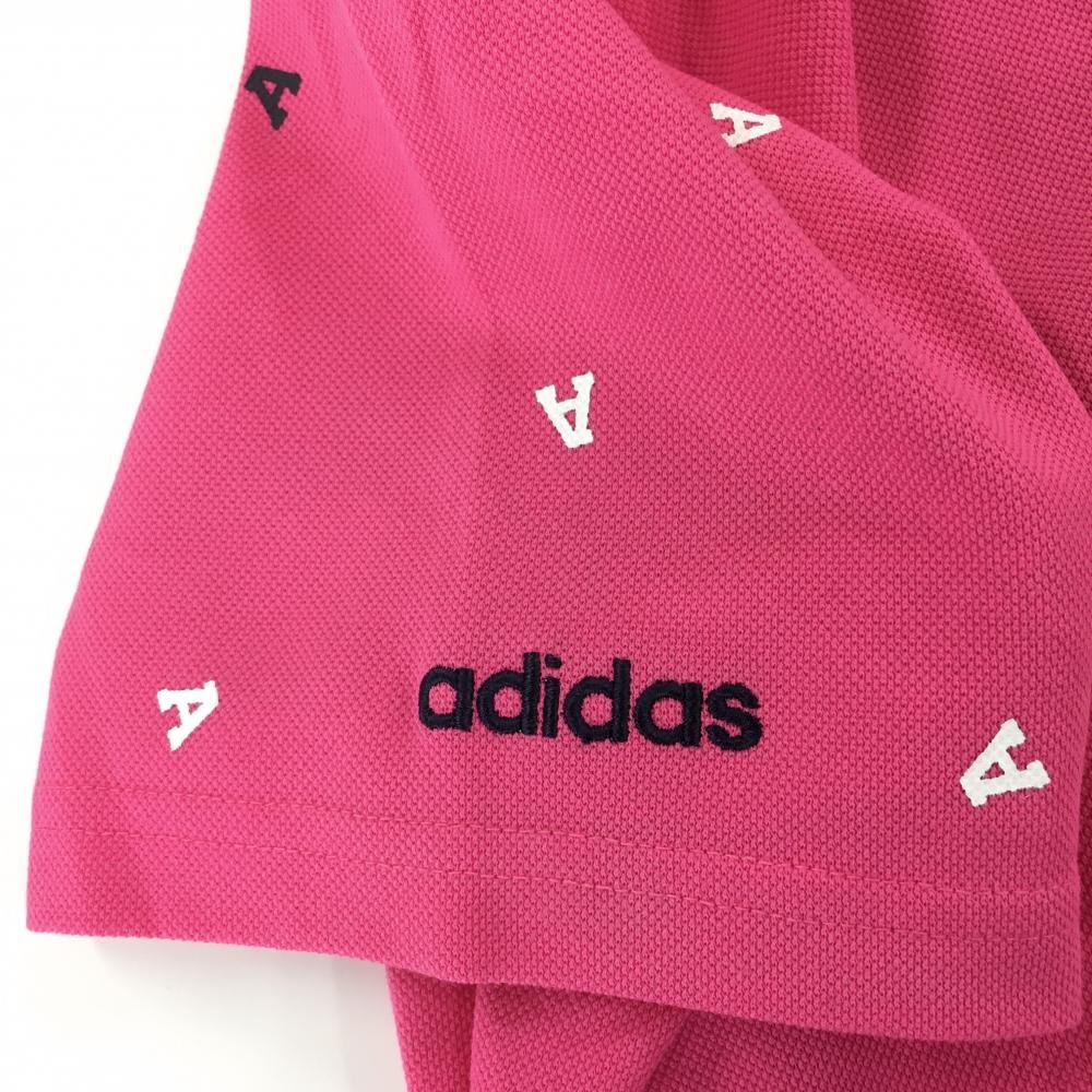 【超美品】アディダス 半袖ポロシャツ ピンク×白 アルファベット総柄 ロゴ刺しゅう レディース M/M ゴルフウェア adidas