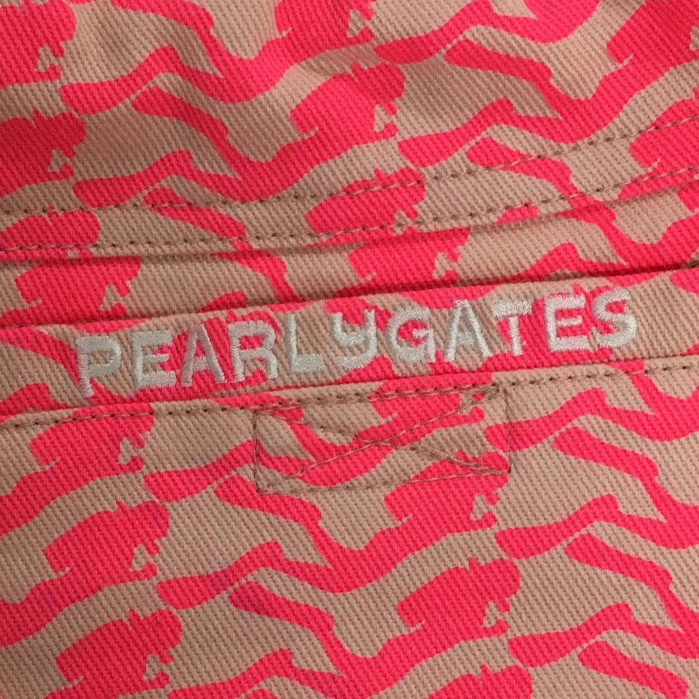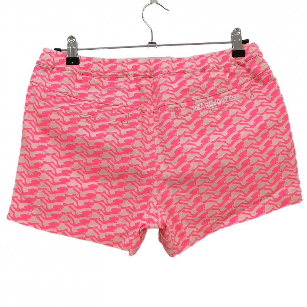 【超美品】パーリーゲイツ ショートパンツ ライトベージュ×蛍光ピンク 総柄 レディース 1(M) ゴルフウェア サンプル品 PEARLY GATES
