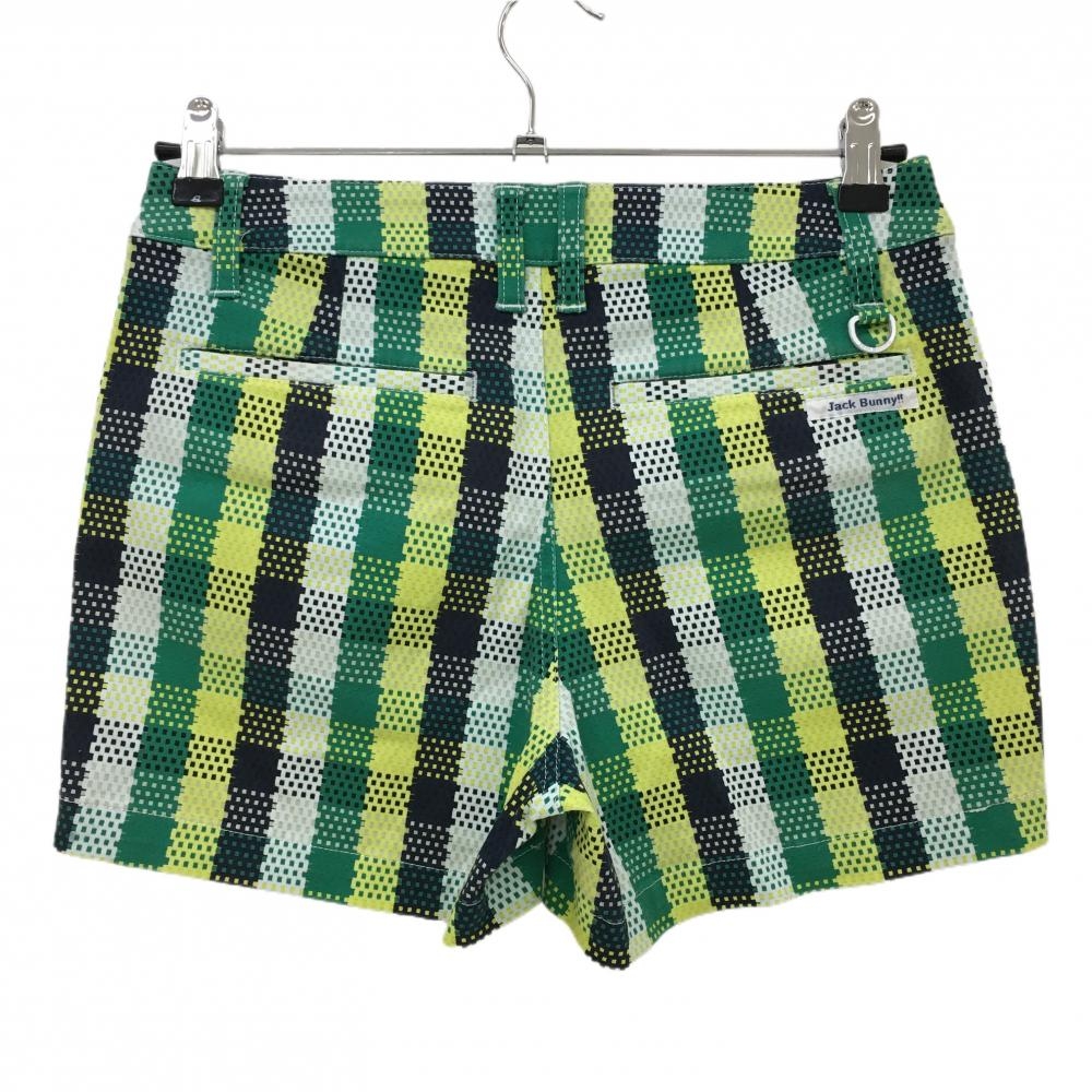 【美品】ジャックバニー ショートパンツ グリーン×イエロー チェック レディース 0(S) ゴルフウェア Jack Bunny
