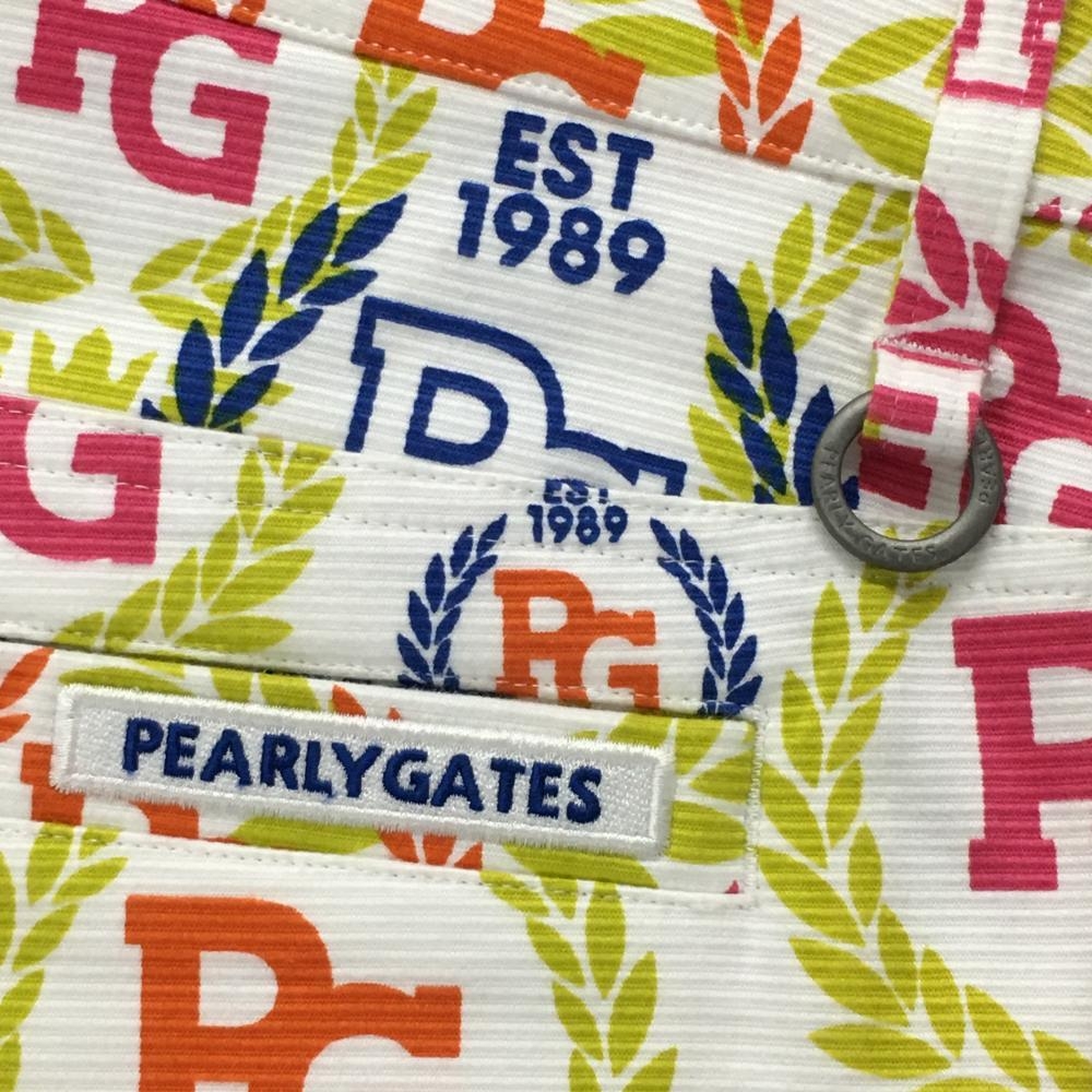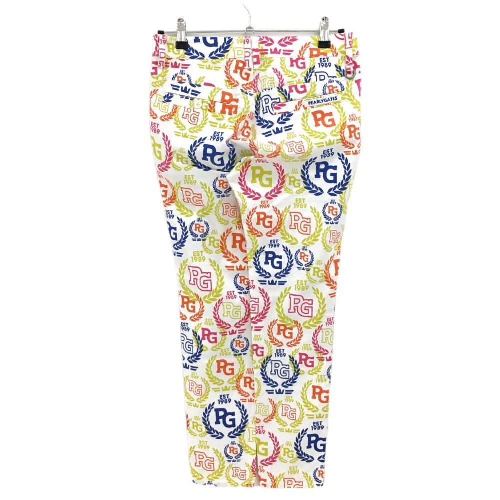 【超美品】パーリーゲイツ パンツ 白×マルチカラー 総柄 ストレッチ レディース 1(M) ゴルフウェア PEARLY GATES