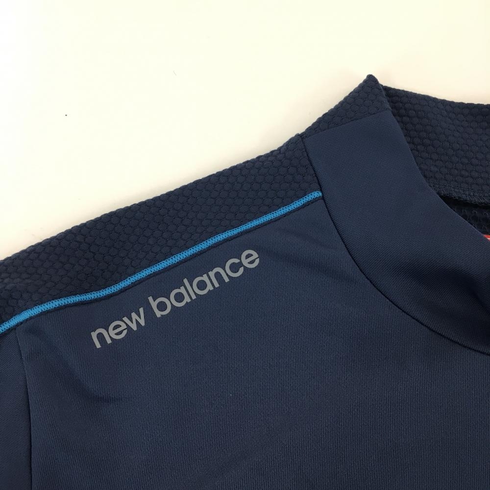 【超美品】ニューバランスゴルフ 半袖ハイネックシャツ ネイビー 切替 胸ポケット メンズ 7(2XL) ゴルフウェア 大きいサイズ New Balance
