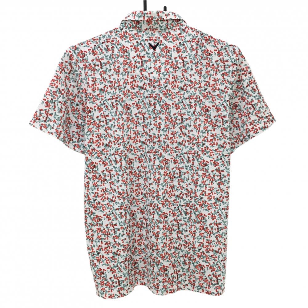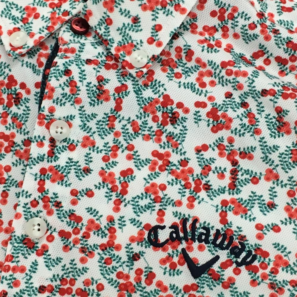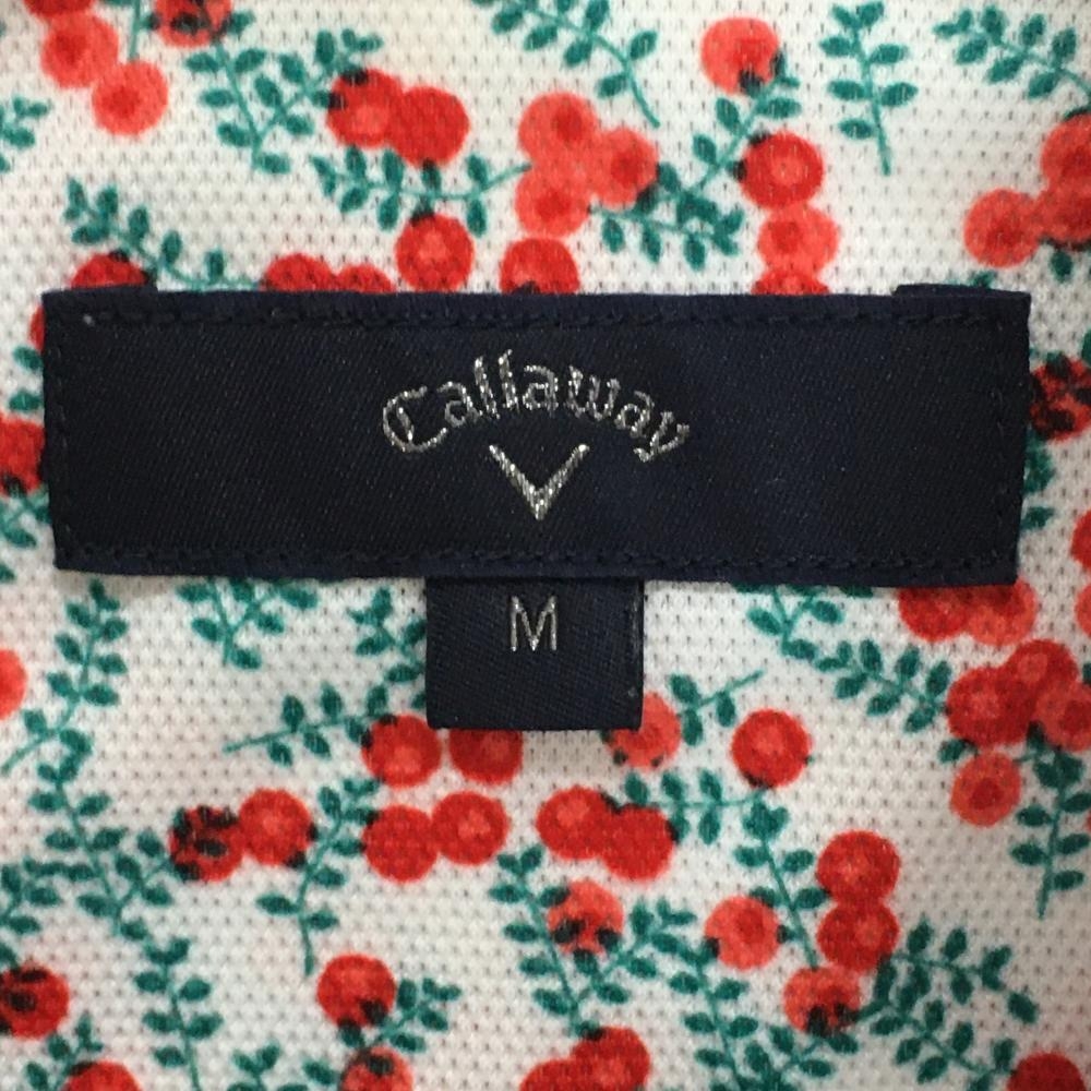 【美品】キャロウェイ 半袖ポロシャツ 白×レッド リーフ柄 木の実 メンズ M ゴルフウェア Callaway