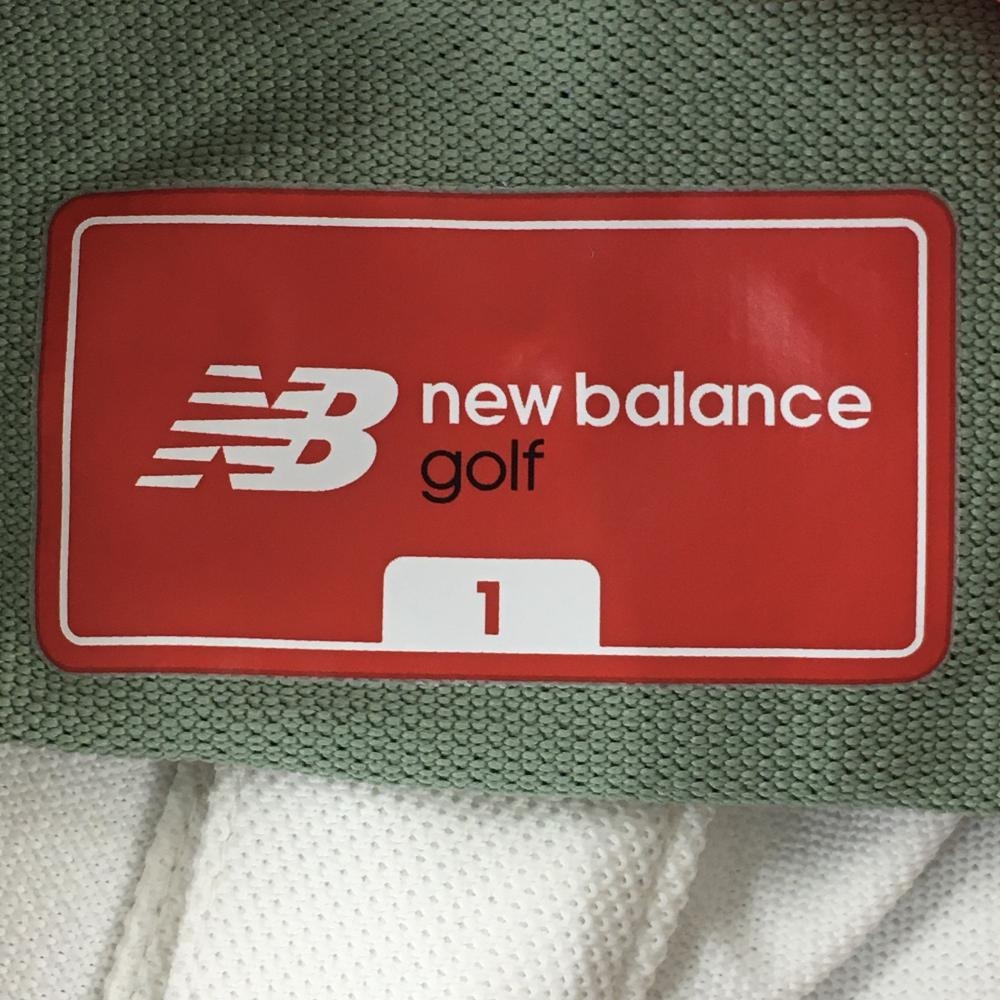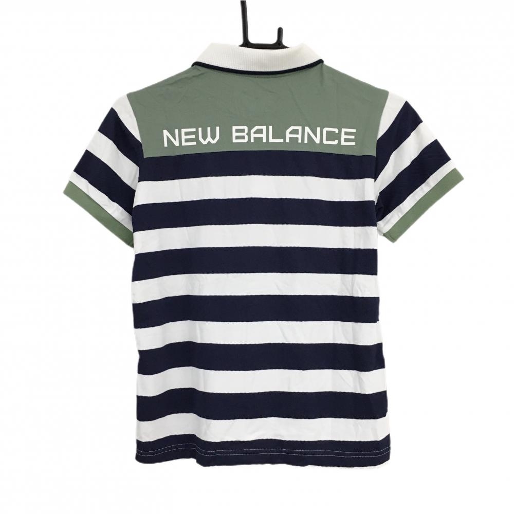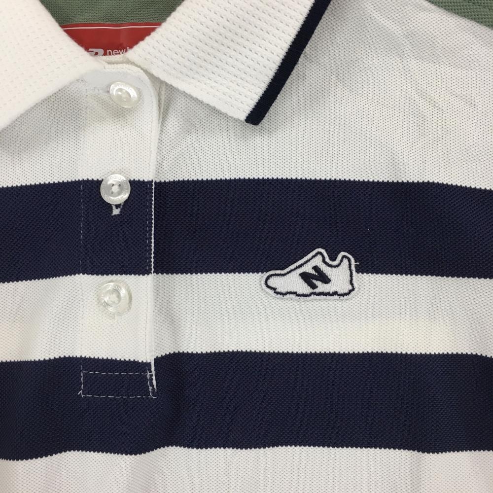 【超美品】ニューバランスゴルフ 半袖ポロシャツ 白×ネイビー×ライトグリーン 一部ボーダー レディース 1(M) ゴルフウェア New Balance