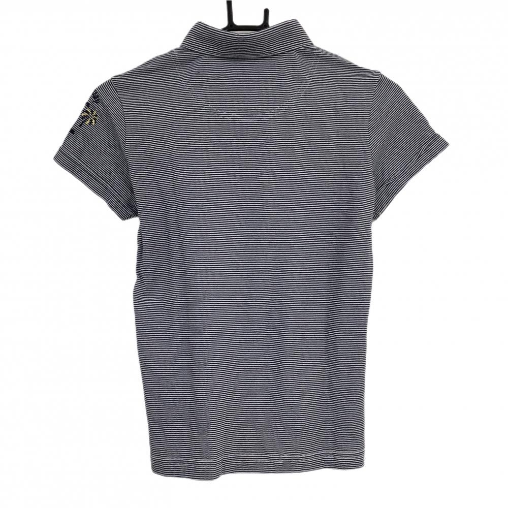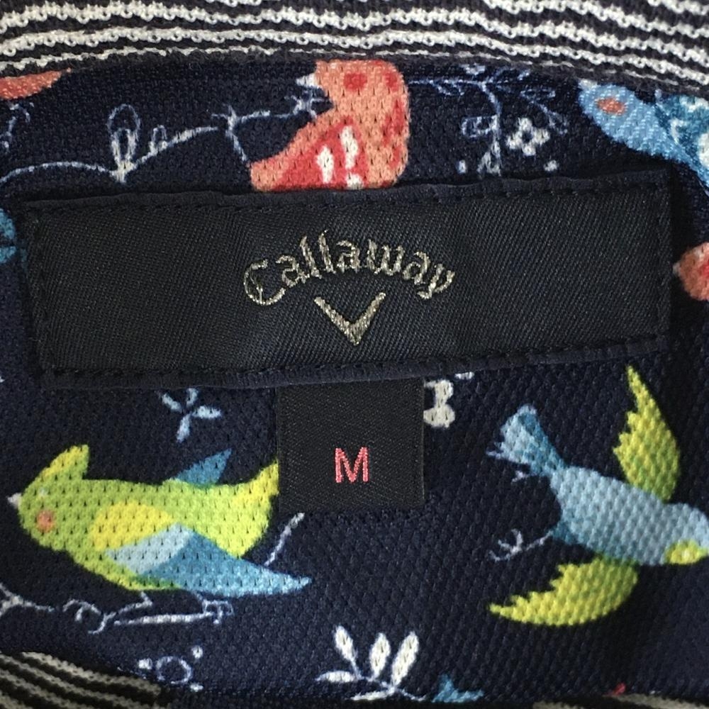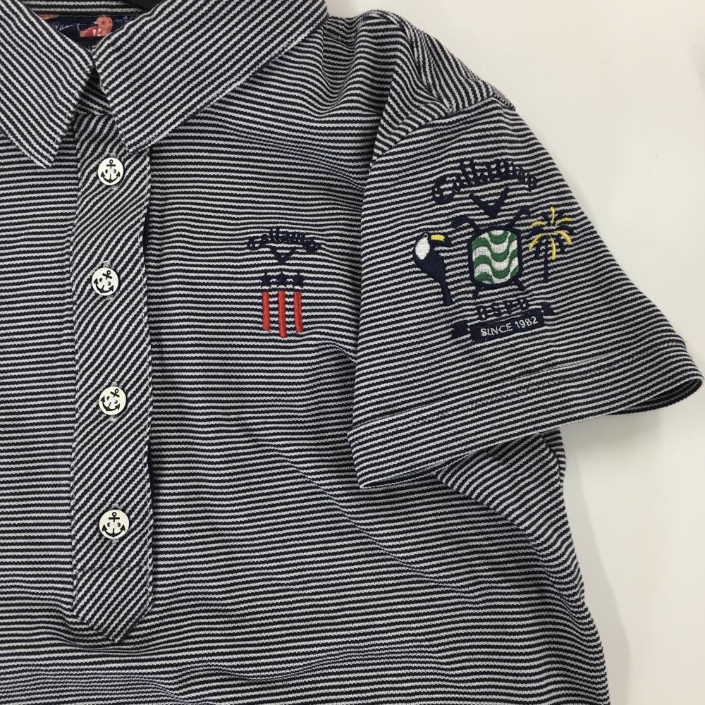 【超美品】キャロウェイ 半袖ポロシャツ 白×ネイビー ボーダー ロゴ刺しゅう レディース M ゴルフウェア Callaway
