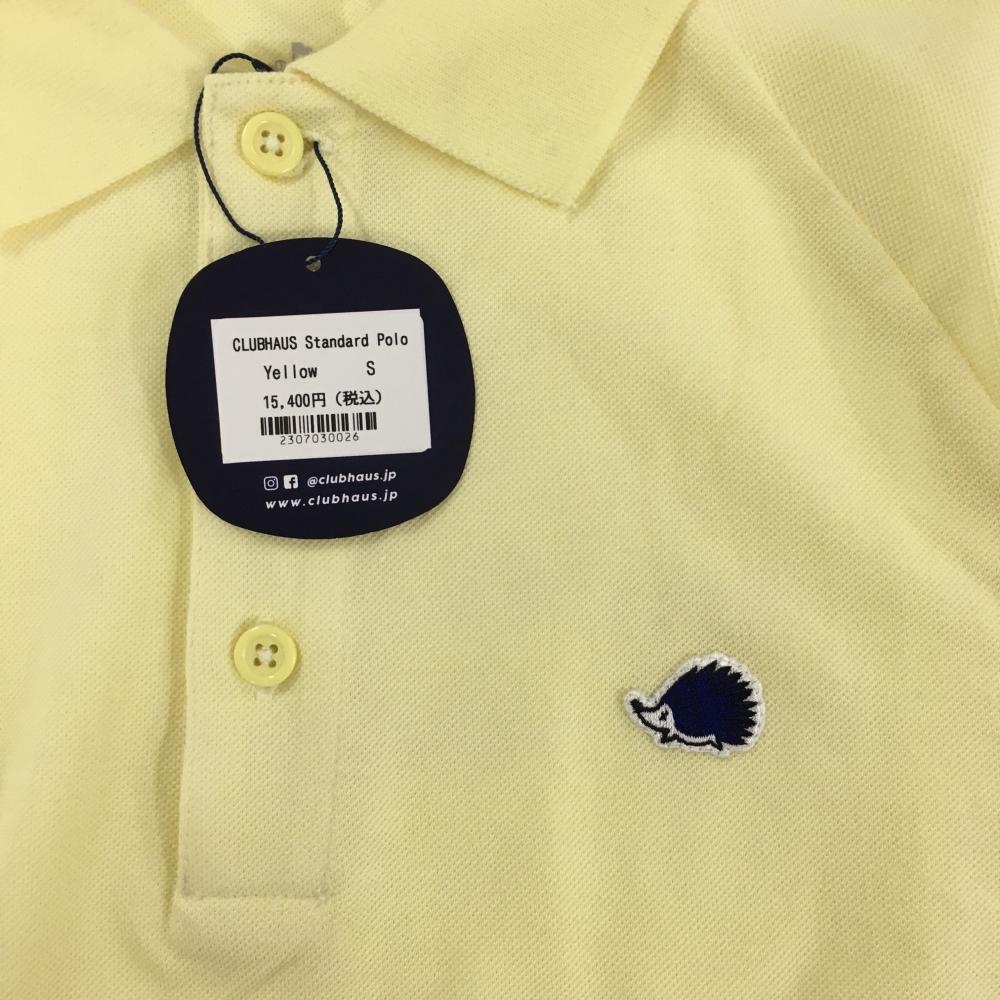 【新品】クラブハウス 半袖ポロシャツ イエロー コットン100% バックプリント メンズ Short ゴルフウェア Clubhaus