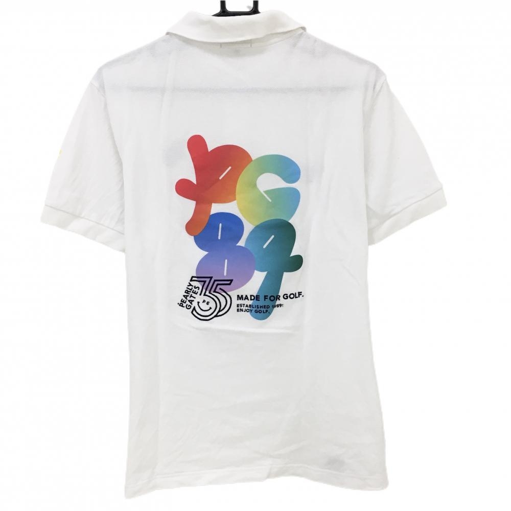 【超美品】パーリーゲイツ 半袖ポロシャツ 白 35周年 バックロゴ 襟裏ニコちゃん メンズ 6(XL) ゴルフウェア 2024年モデル PEARLY GATES