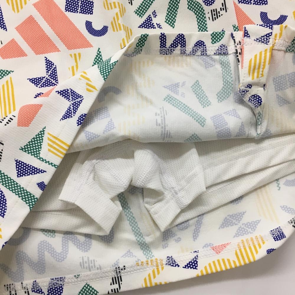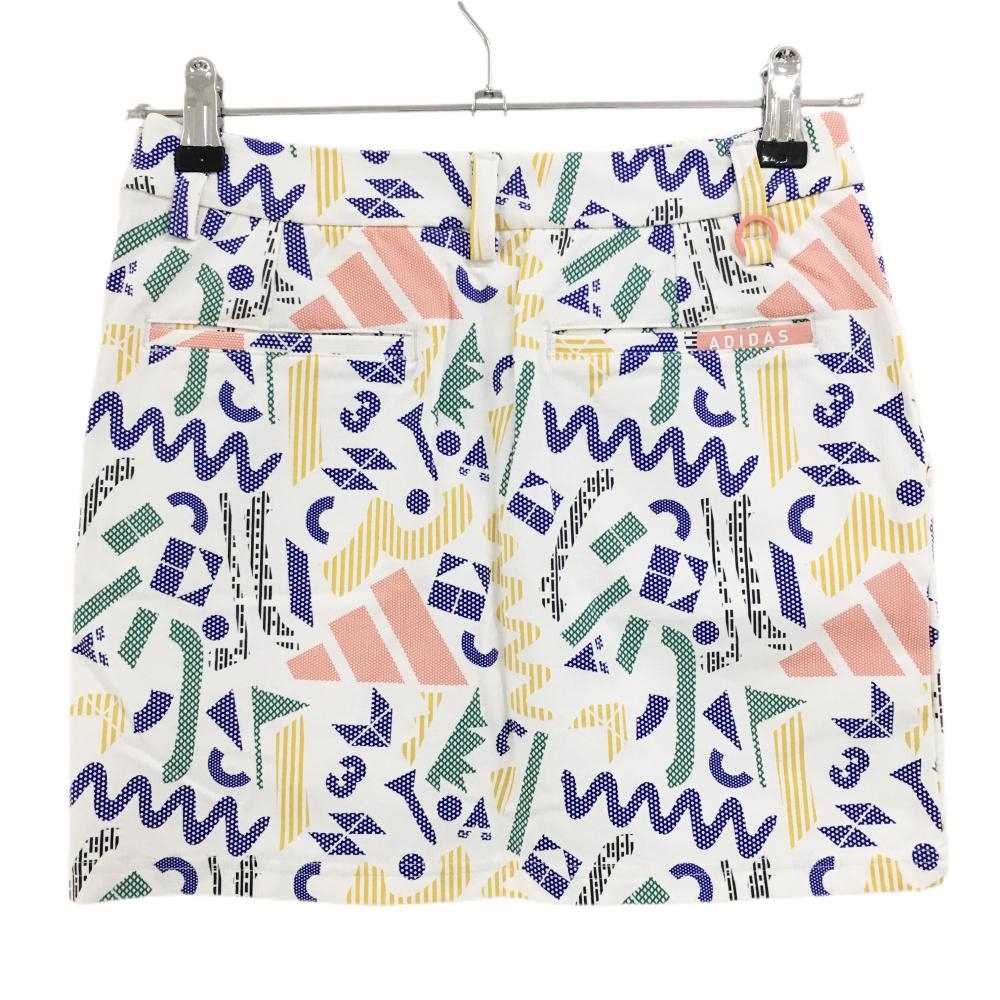 【新品】アディダス スカート 白×マルチカラー 総柄 ストレッチ 内側インナーパンツ レディース S ゴルフウェア 2024年モデル adidas