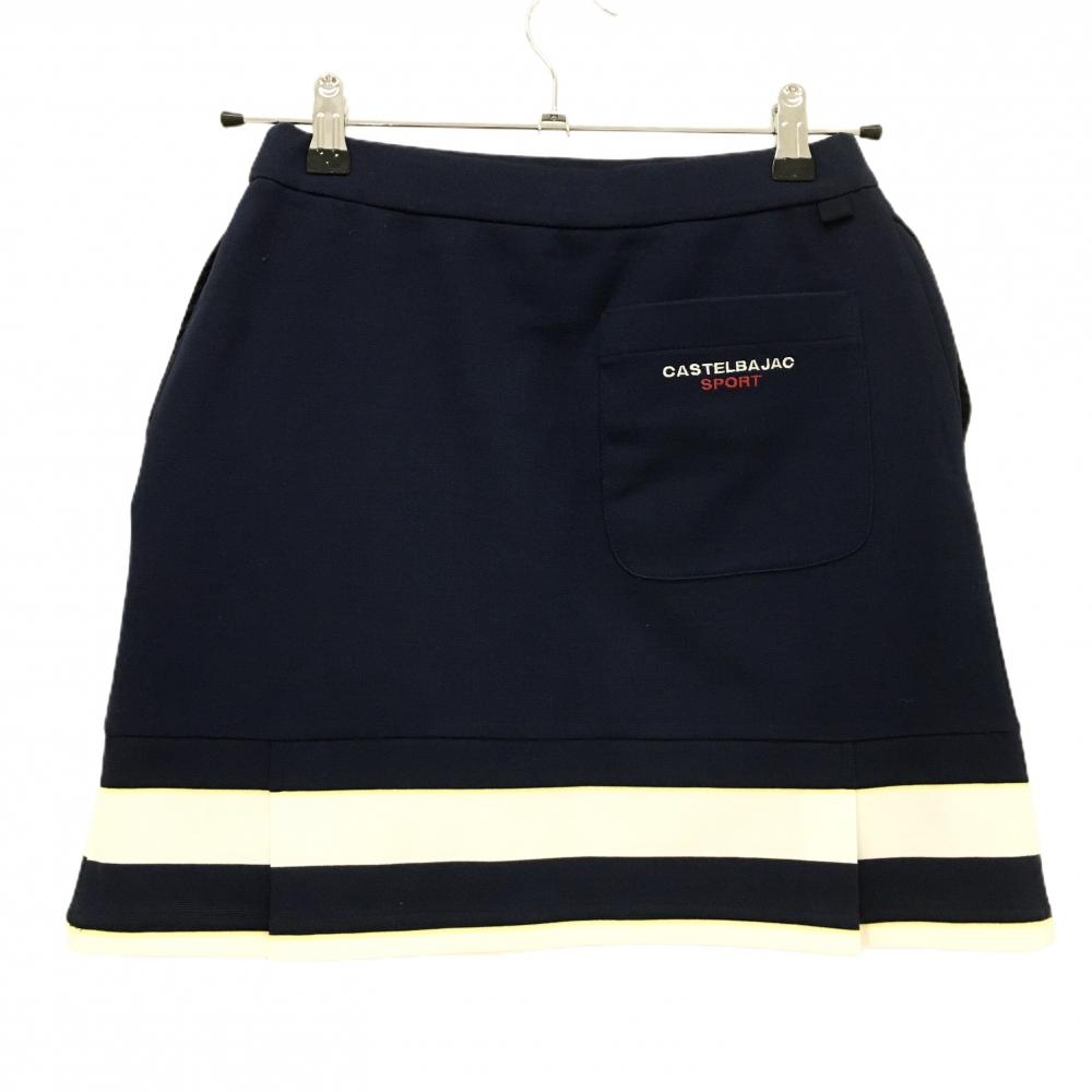 【美品】カステルバジャック スカート ネイビー×白 裾ライン レディース 38(M) ゴルフウェア CASTELBAJAC