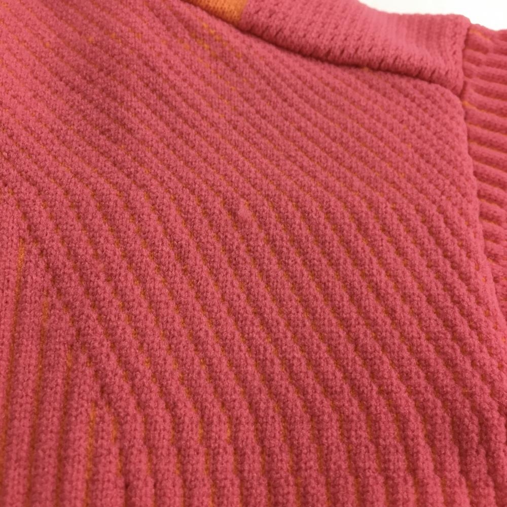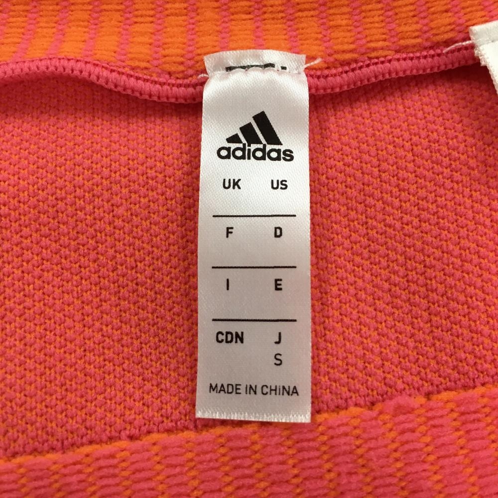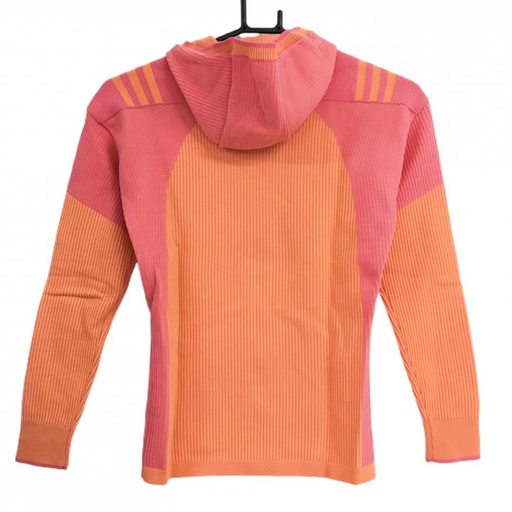 【超美品】アディダス ニットジップパーカー ピンク×オレンジ リブニット 肩3ライン レディース S ゴルフウェア adidas