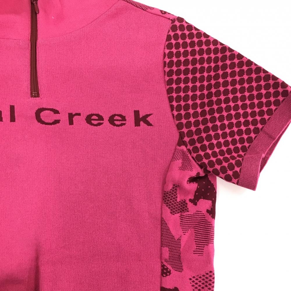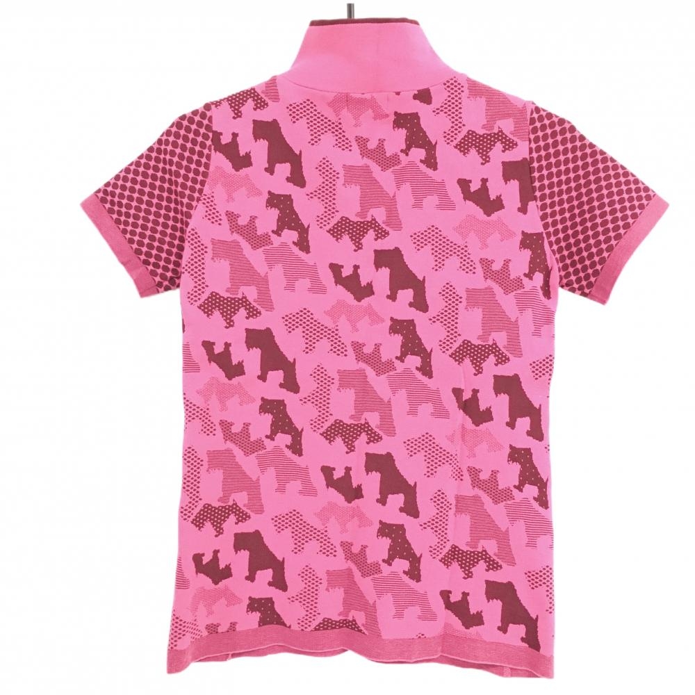 【超美品】ヒールクリーク 半袖ハイネックセーター ピンク系×ボルドー ハーフジップ レディース 40(M) ゴルフウェア Heal Creek