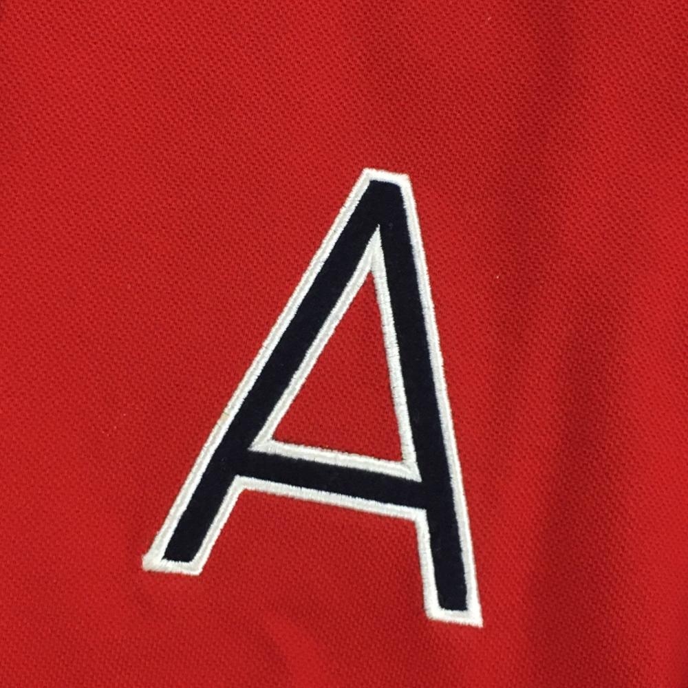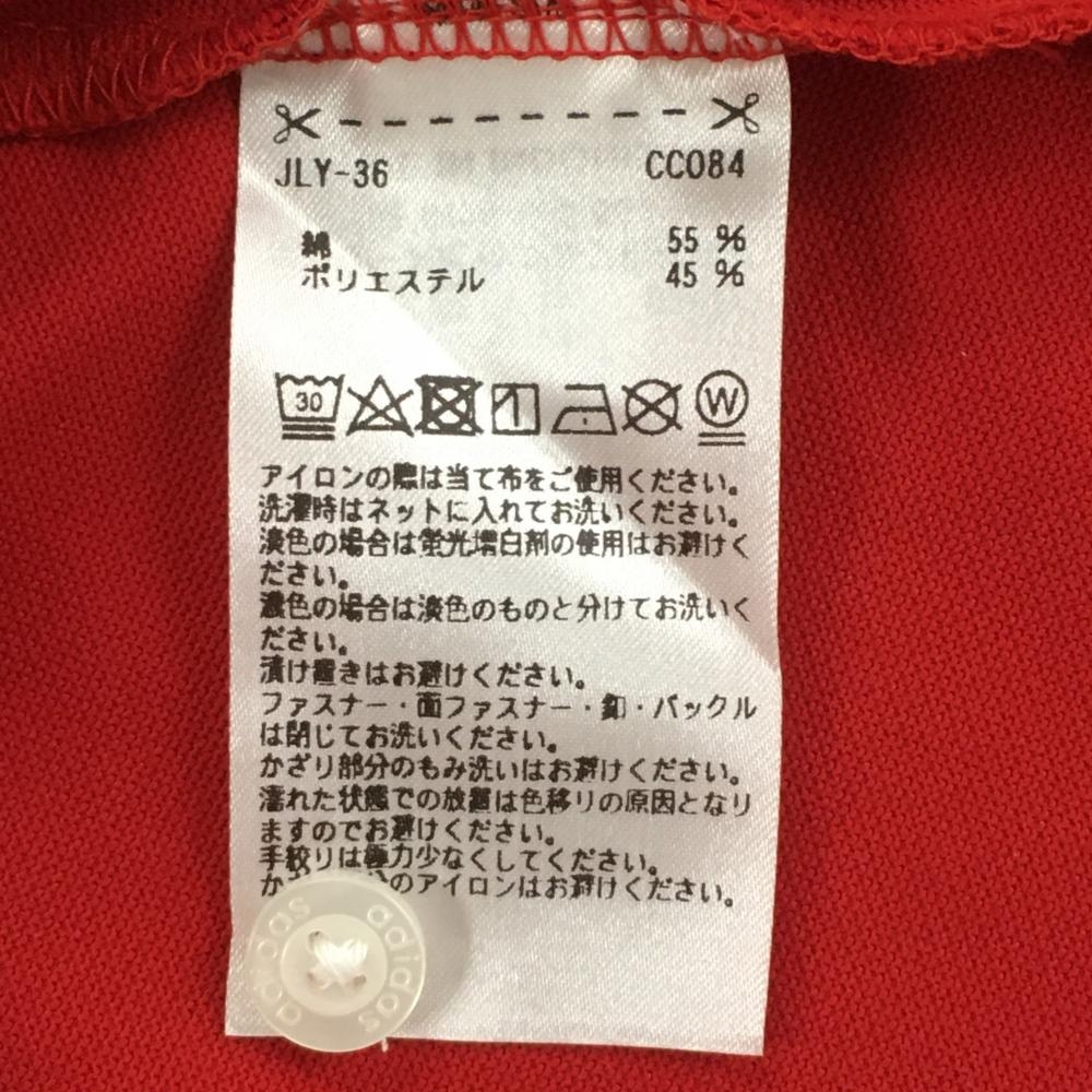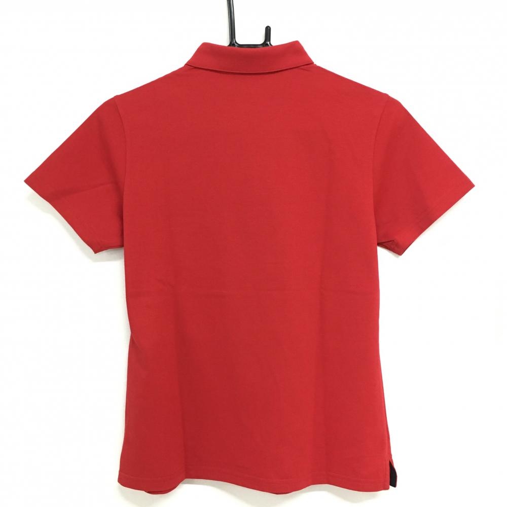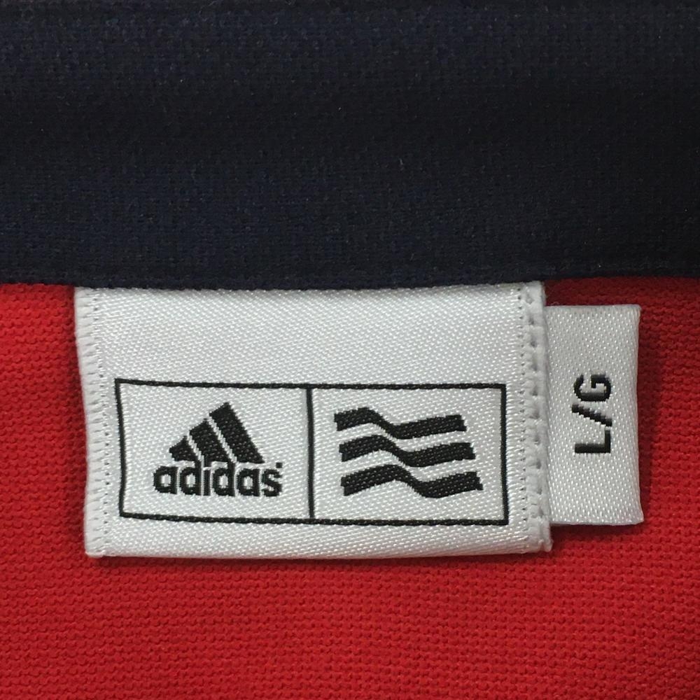 【超美品】アディダス 半袖ポロシャツ レッド×ネイビー 英字刺しゅう レディース L ゴルフウェア adidas