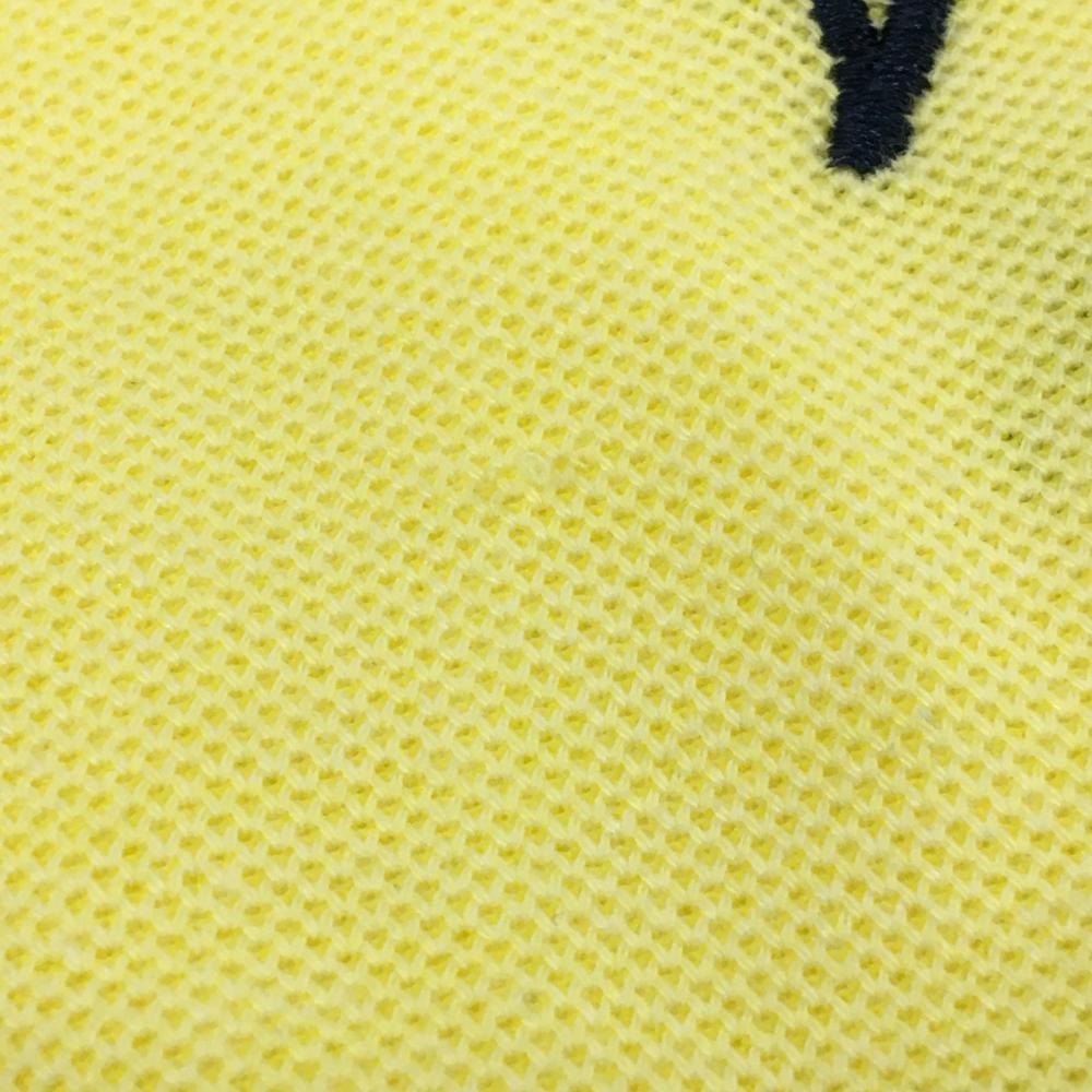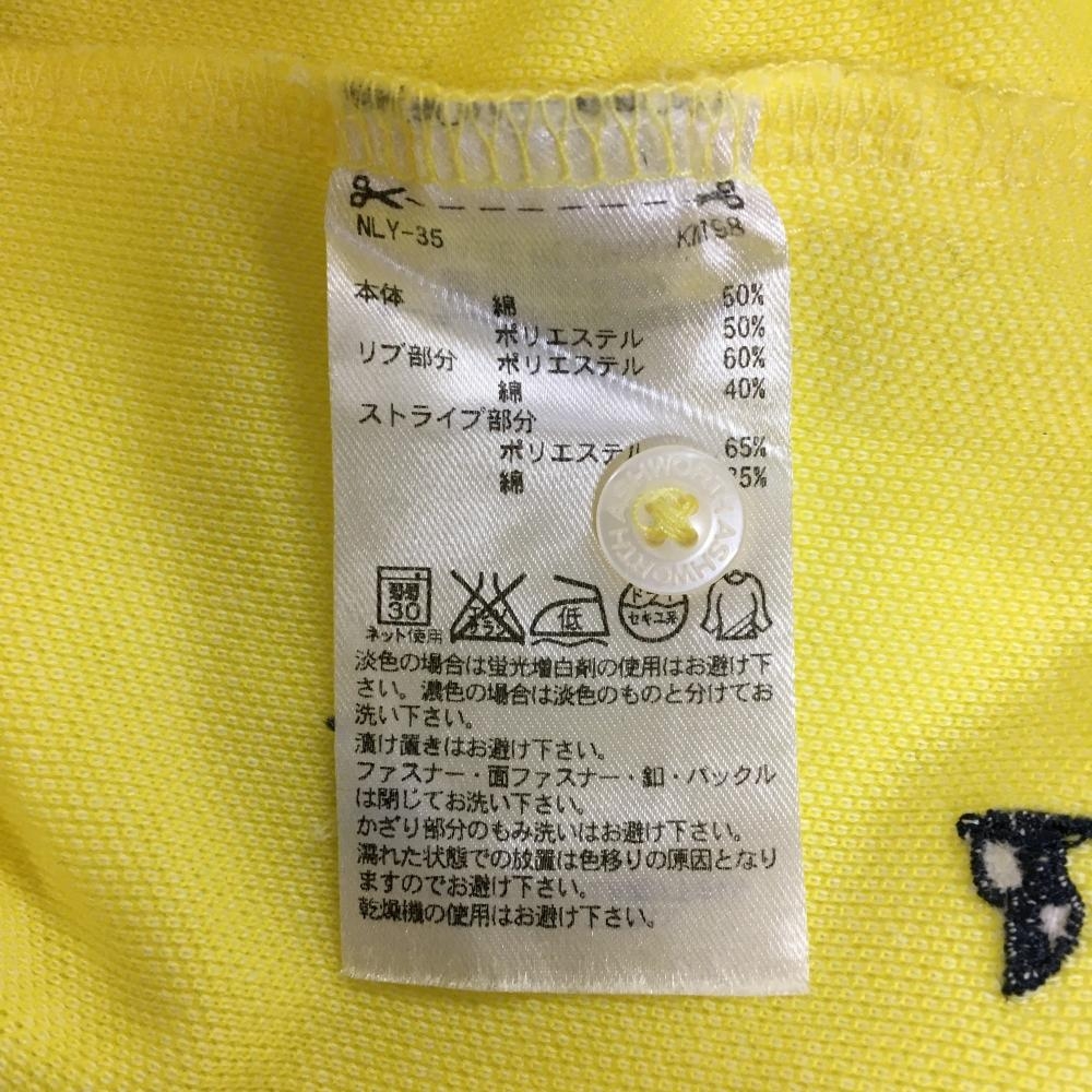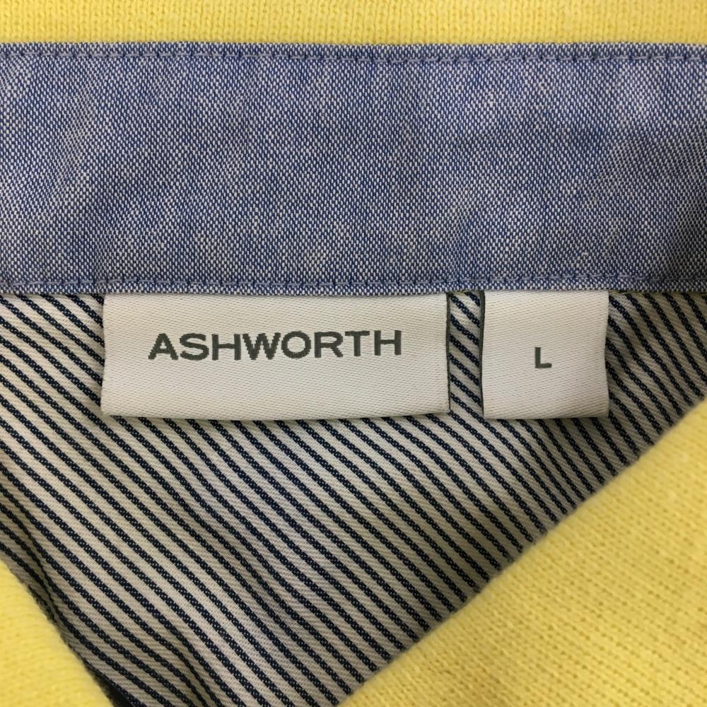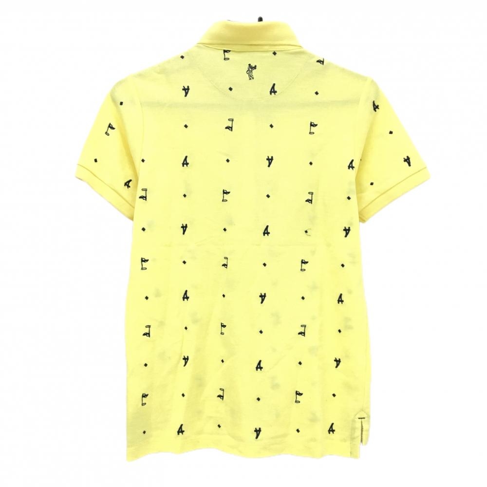 【超美品】アシュワース 半袖ポロシャツ イエロー×ネイビー スクエアドット×英字柄刺しゅう レディース L ゴルフウェア ASHWORTH