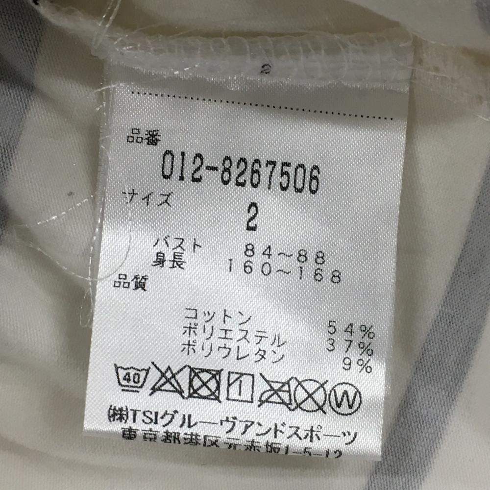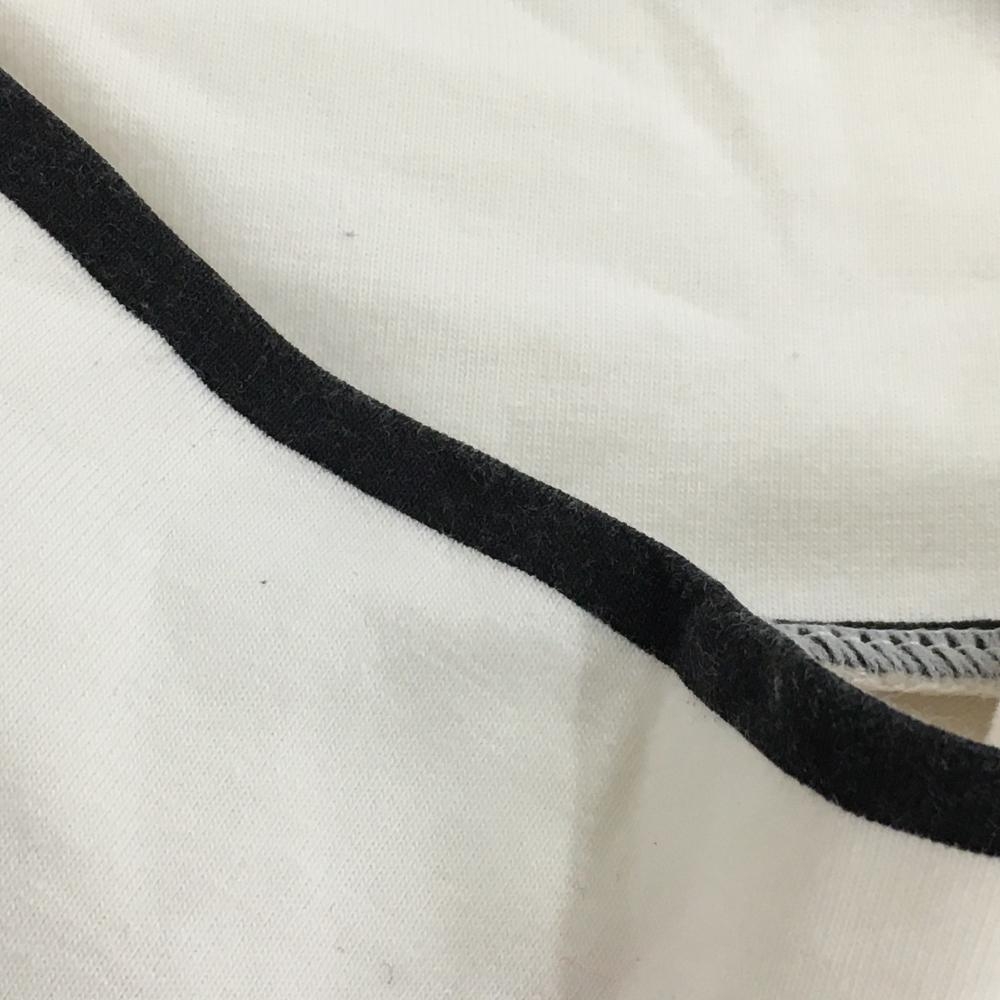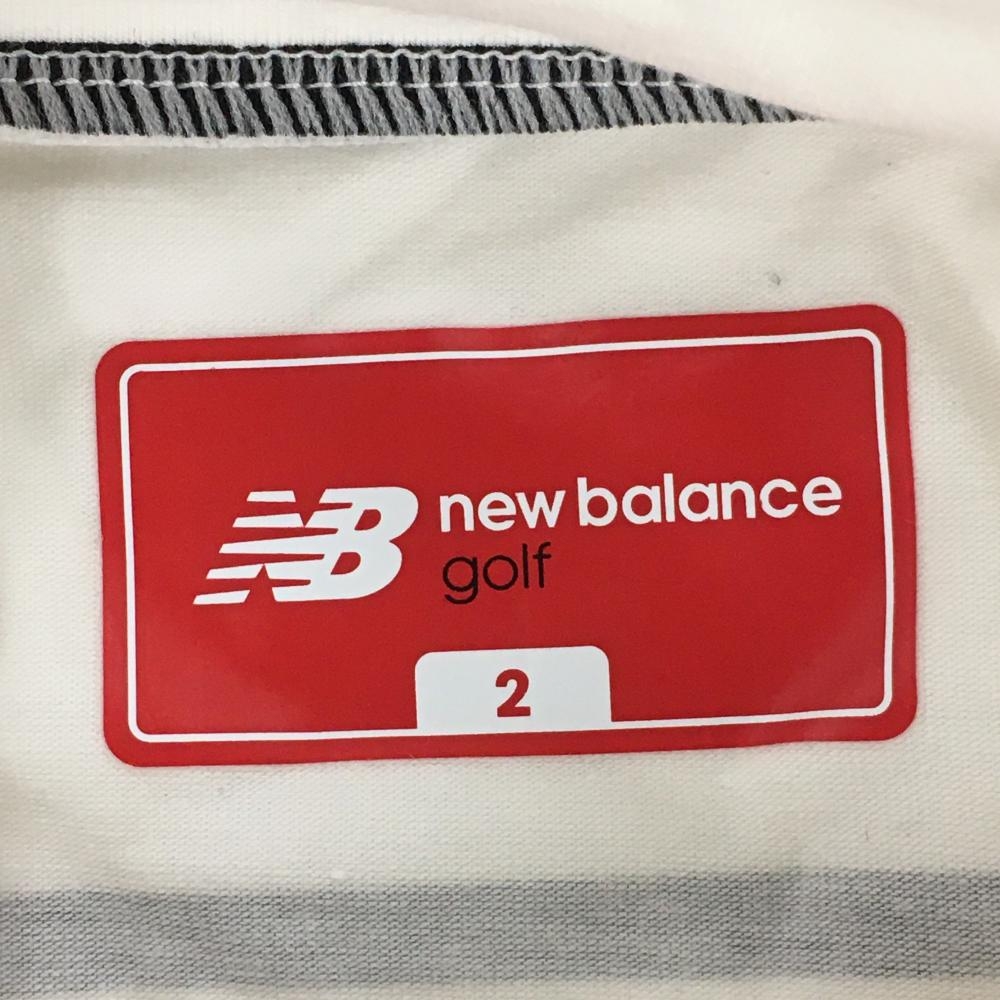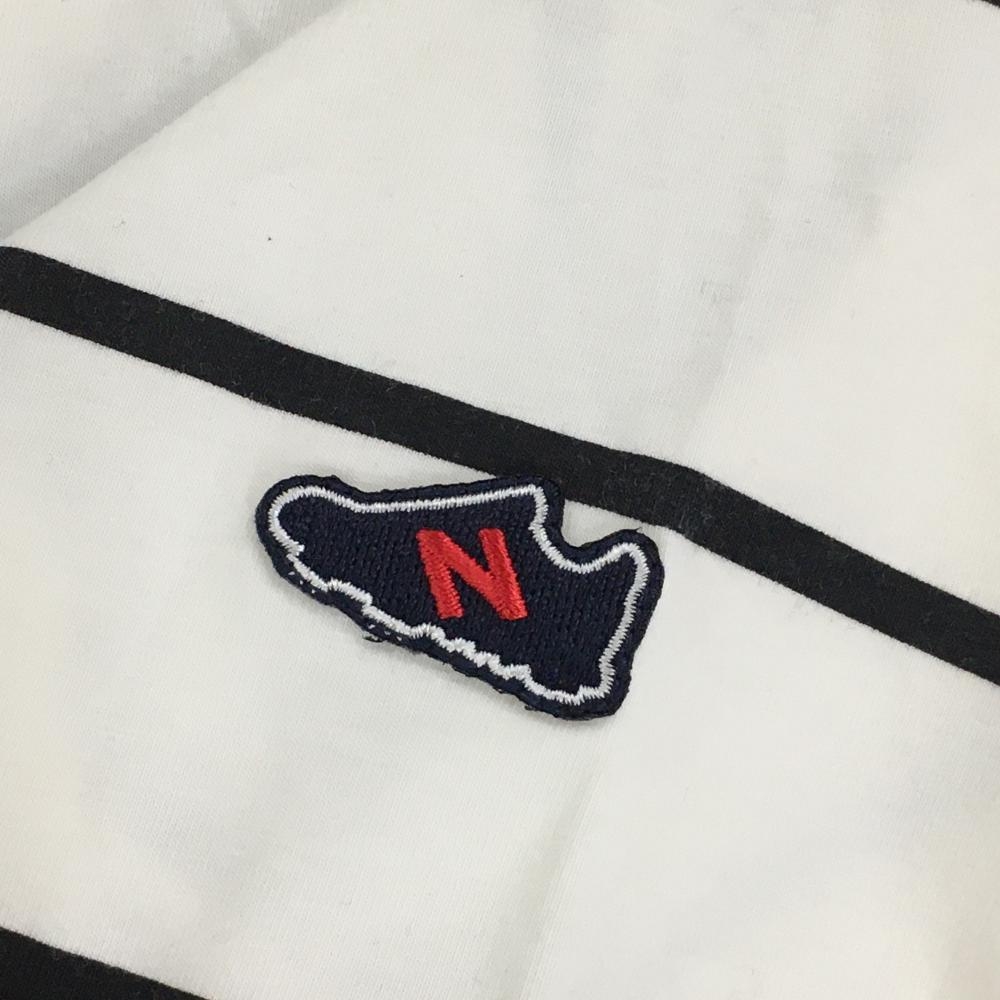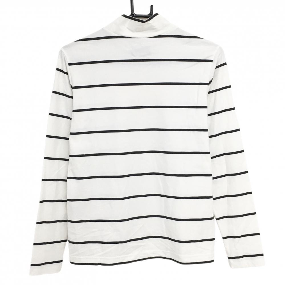 【美品】ニューバランスゴルフ 長袖ハイネックシャツ 白×黒 ボーダー フロッキープリント レディース 2(L) ゴルフウェア New Balance