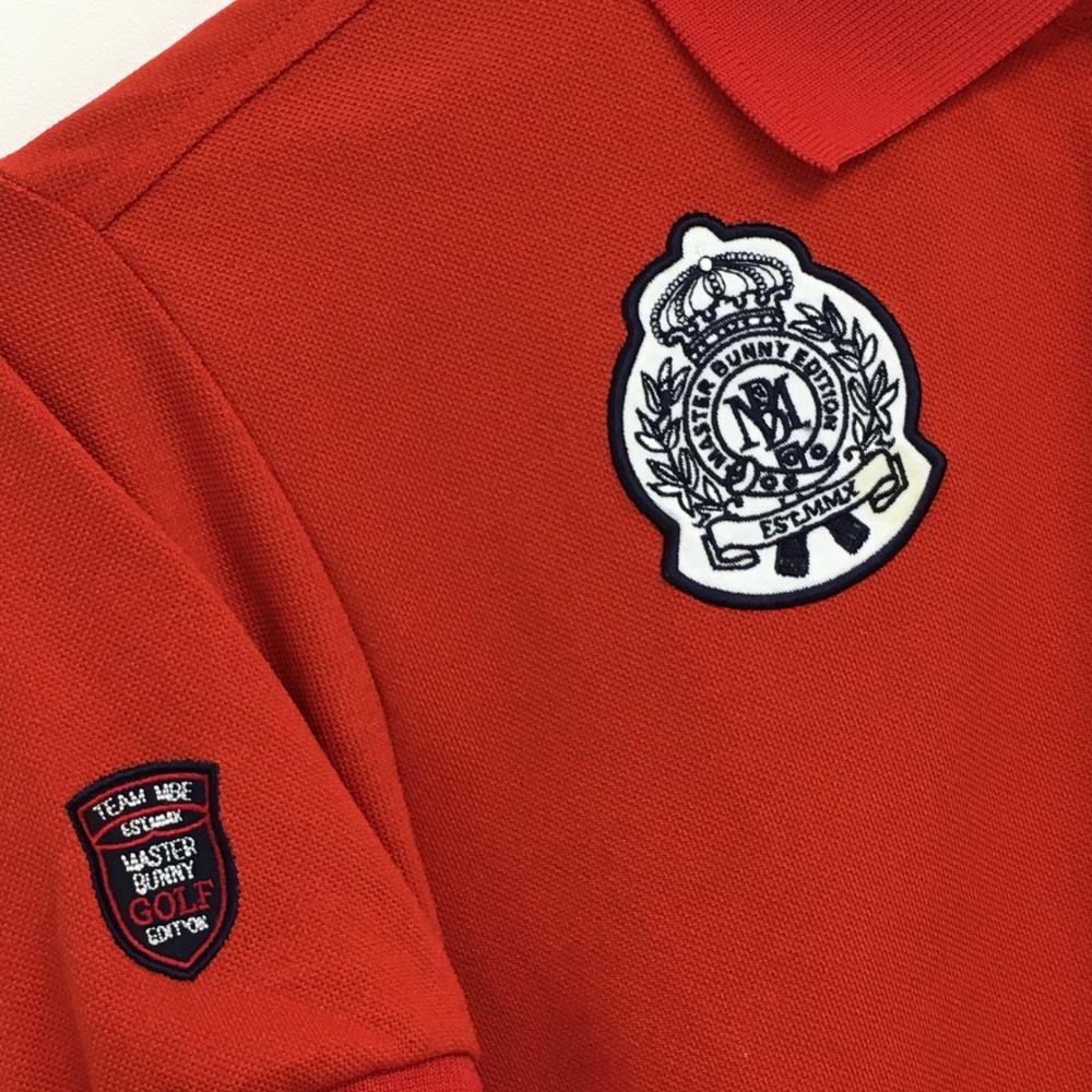 【美品】マスターバニー 半袖ポロシャツ レッド×ネイビー ロゴ刺しゅう レディース 1(M) ゴルフウェア MASTER BUNNY EDITION