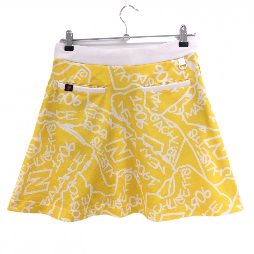 【美品】ニューバランスゴルフ スカート イエロー×白 総柄 レディース 2(L) ゴルフウェア New Balance