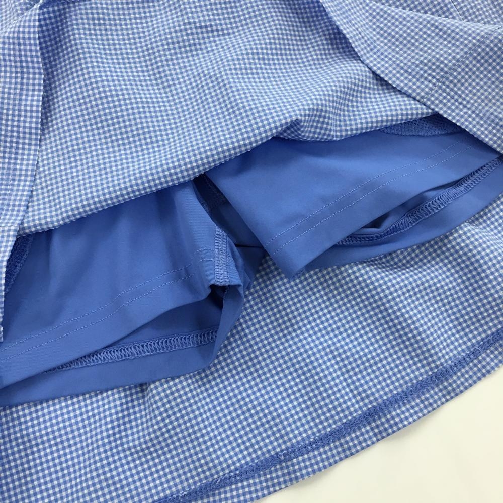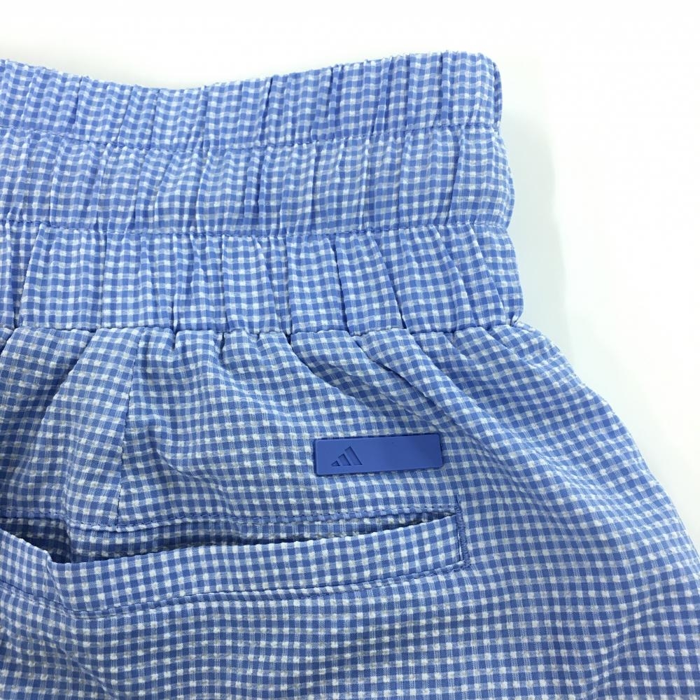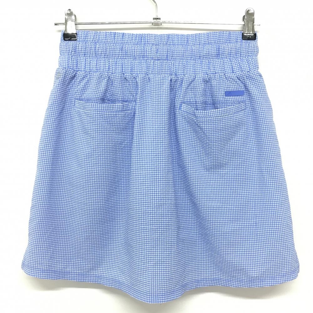 【超美品】アディダス スカート ライトブルー×白 チェック サッカー生地 内側インナーパンツ レディース M ゴルフウェア adidas
