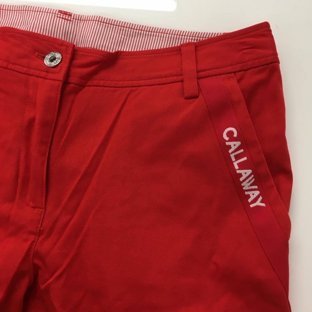 【美品】キャロウェイ パンツ レッド×白 ポケット口ロゴ レディース L ゴルフウェア Callaway
