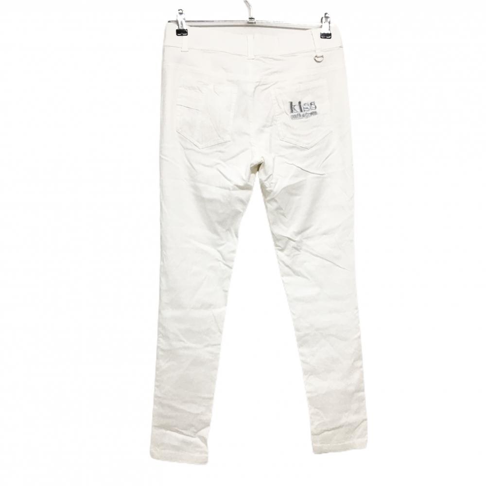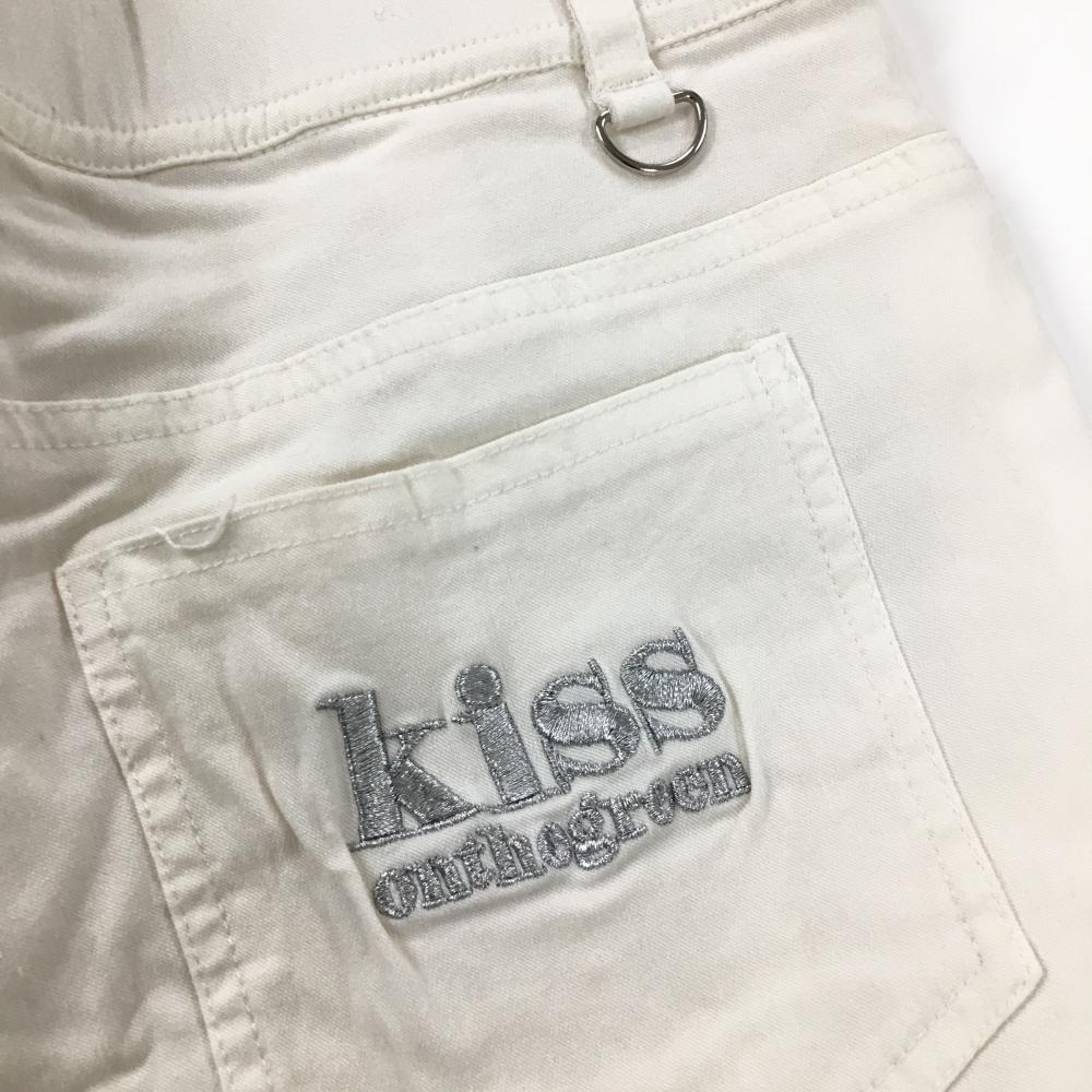 【超美品】キスオンザグリーン パンツ 白 ロゴシルバー ストレッチ 一部裏地付 レディース 3(L) ゴルフウェア kiss on the green