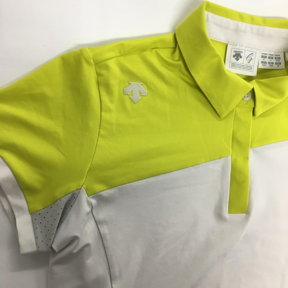 【美品】デサントゴルフ 半袖ポロシャツ イエロー×白 袖一部パンチング 中田英寿 レディース M ゴルフウェア DESCENTE
