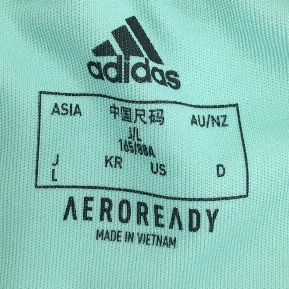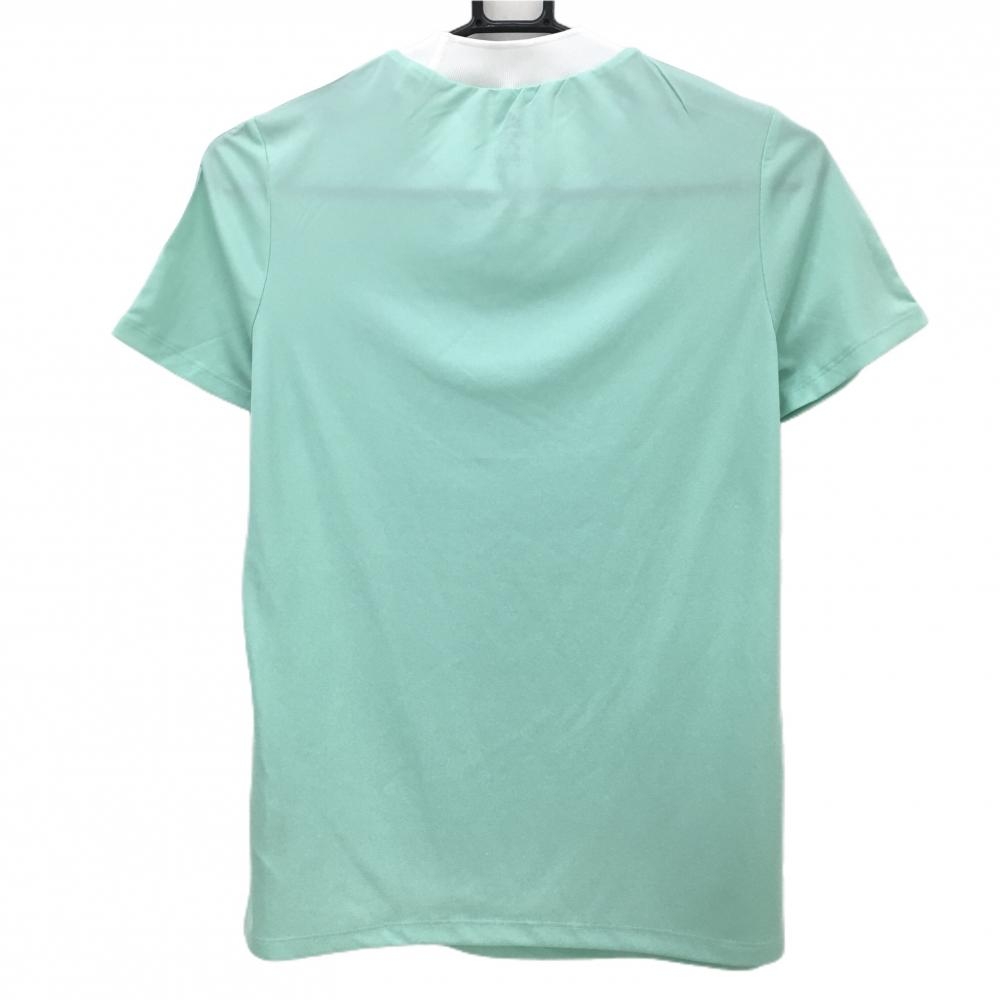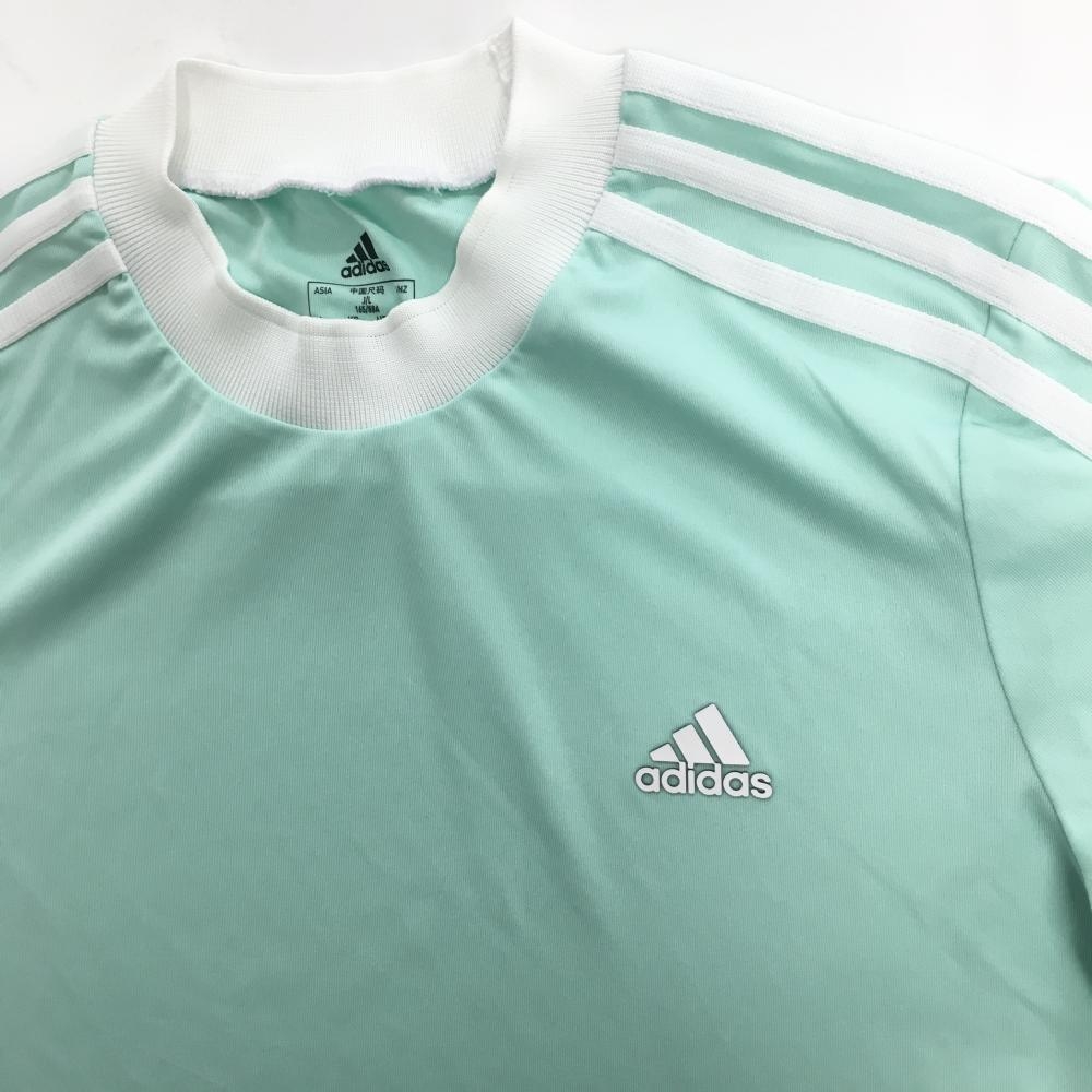 【超美品】アディダス 半袖ハイネックシャツ ライトグリーン×白 肩3ライン 立体ロゴ レディース L ゴルフウェア adidas