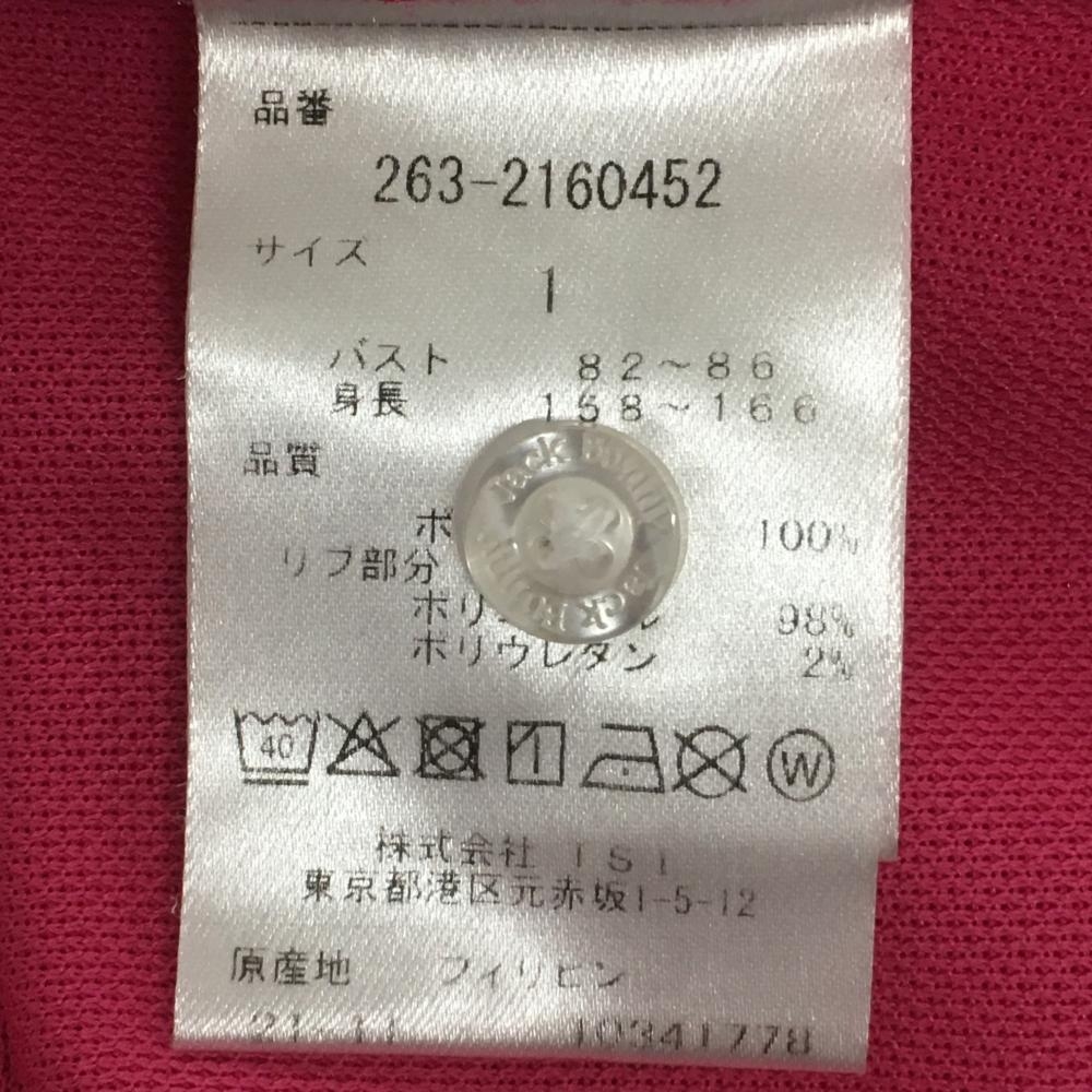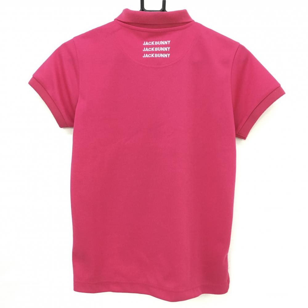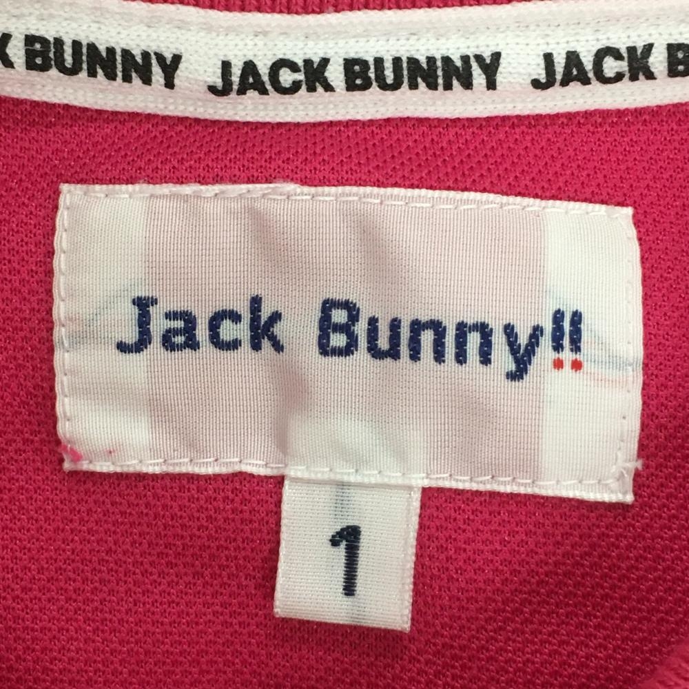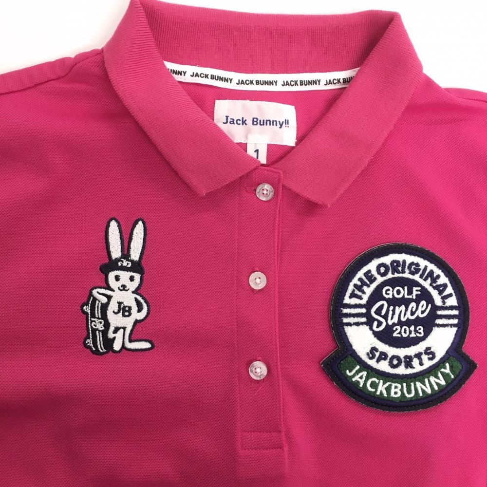 【美品】ジャックバニー 半袖ポロシャツ ピンク×ネイビー ラビット刺しゅう レディース 1(M) ゴルフウェア Jack Bunny