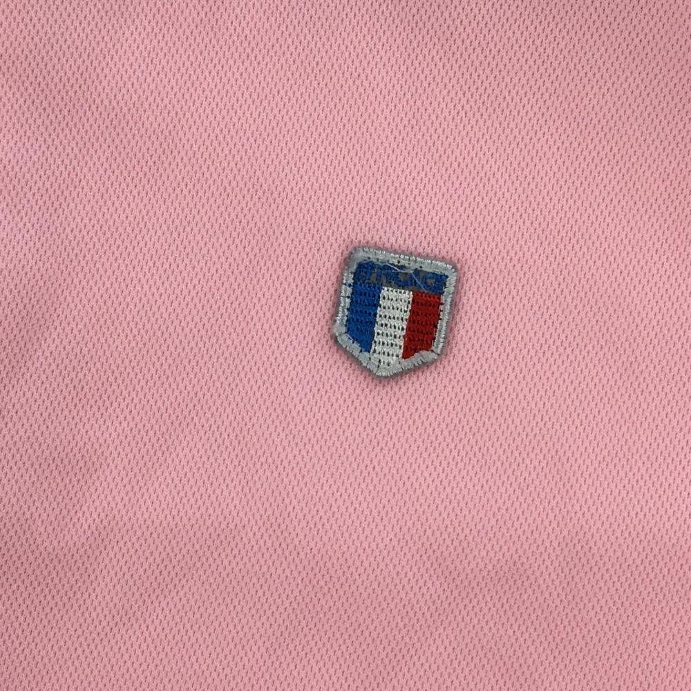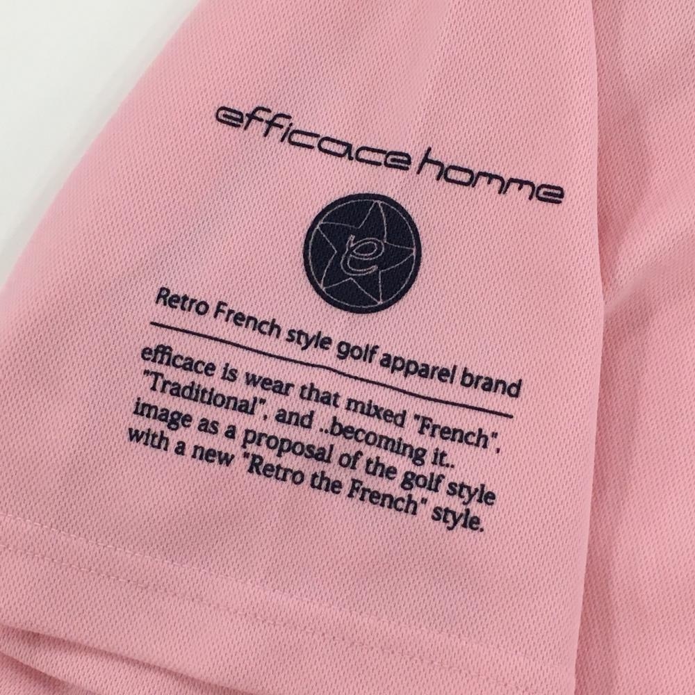 【超美品】エフィカスオム 半袖ポロシャツ ライトピンク×ネイビー 袖ロゴプリント メンズ M ゴルフウェア efficace