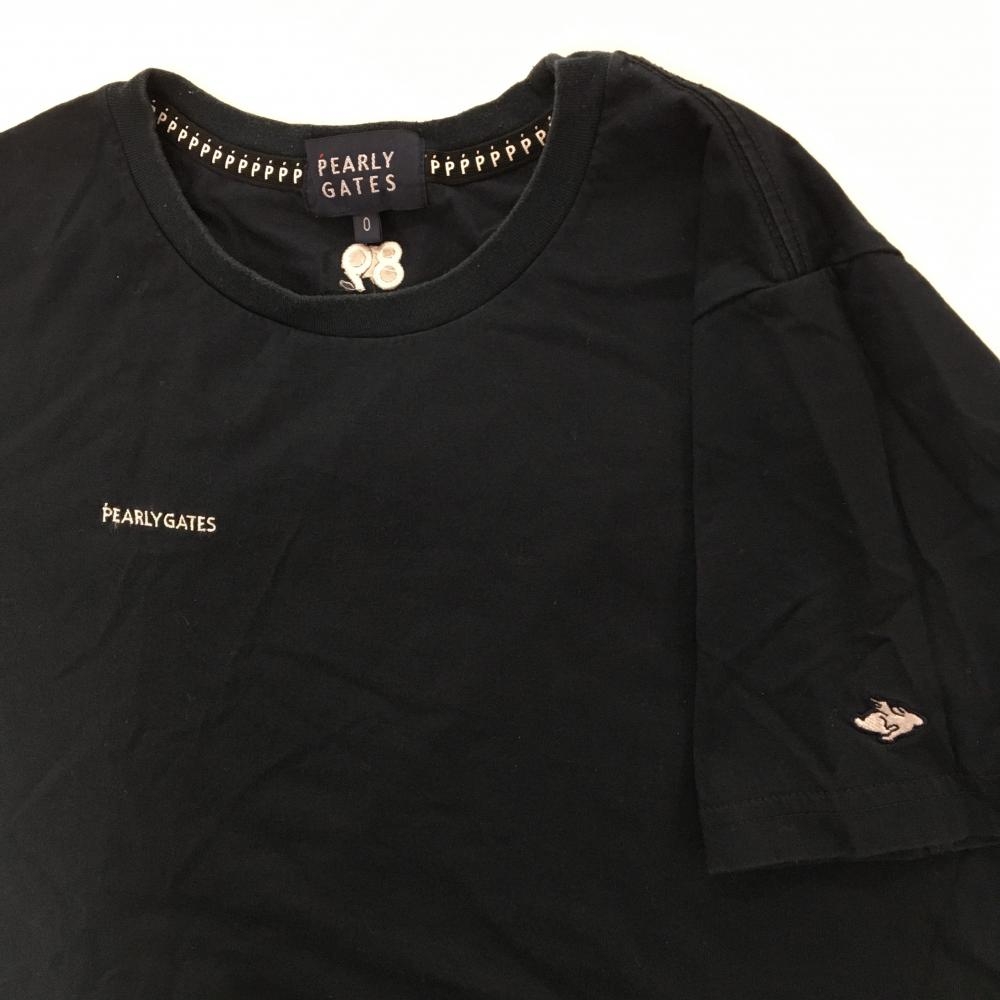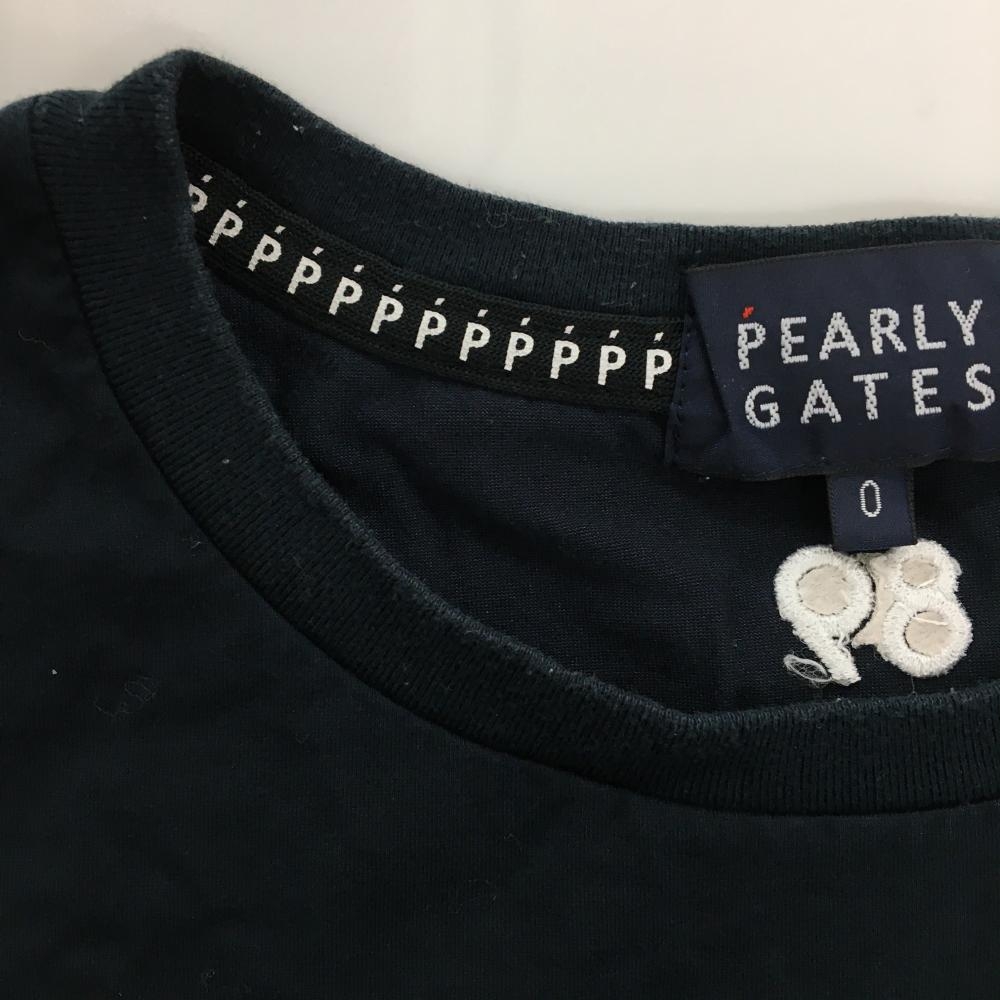 パーリーゲイツ Tシャツ ネイビー×白 コットン混 ロゴ刺しゅう レディース 0(S) ゴルフウェア PEARLY GATES