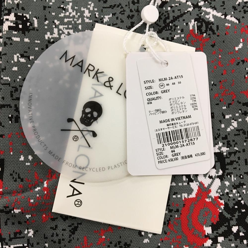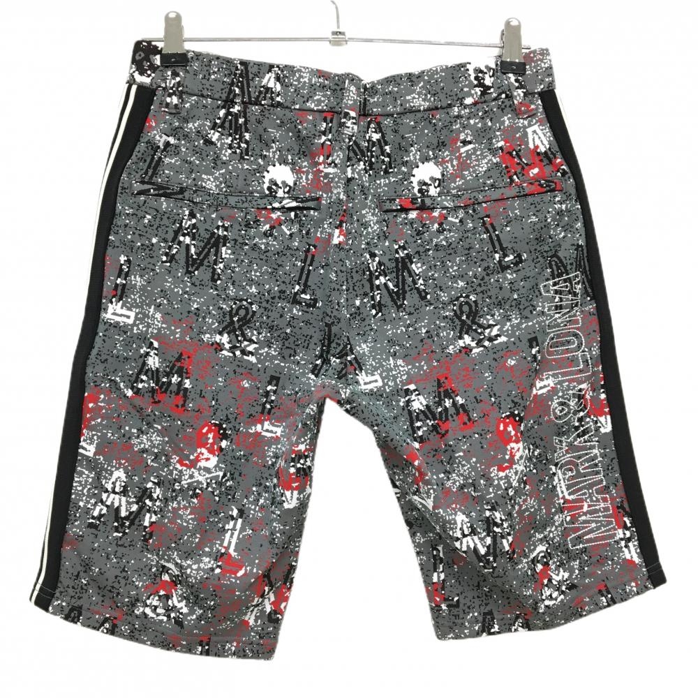 【新品】マークアンドロナ ハーフパンツ グレー×黒 総柄 サイドライン スカル メンズ 44 ゴルフウェア 2022年モデル MARK&LONA