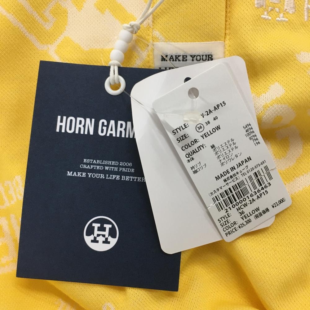 【新品】ホーンガーメント 半袖ポロシャツ イエロー×白 ロゴ総柄 レディース 36(S) ゴルフウェア 2022年モデル MARK&LONA