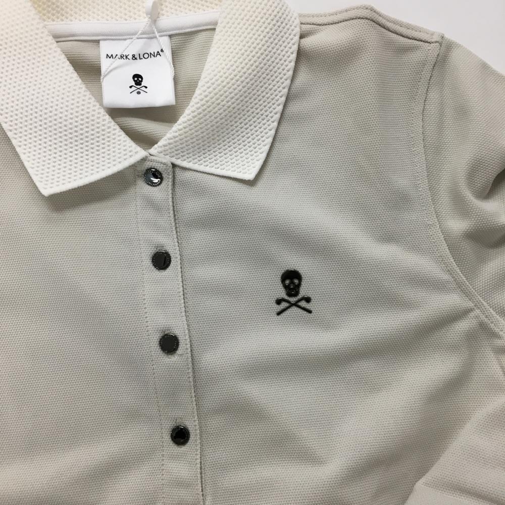 【新品】マークアンドロナ 半袖ポロシャツ グレージュ 胸スカルプリント レディース 36(S) ゴルフウェア 2022年モデル MARK&LONA