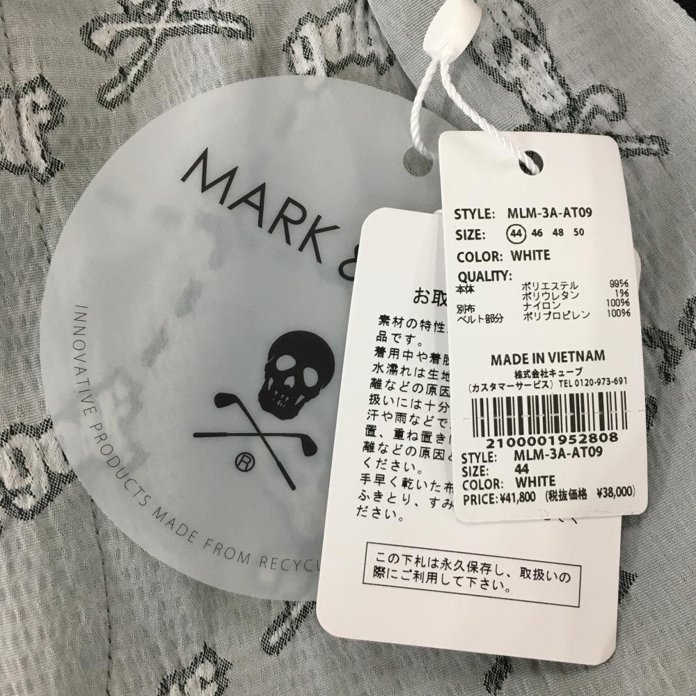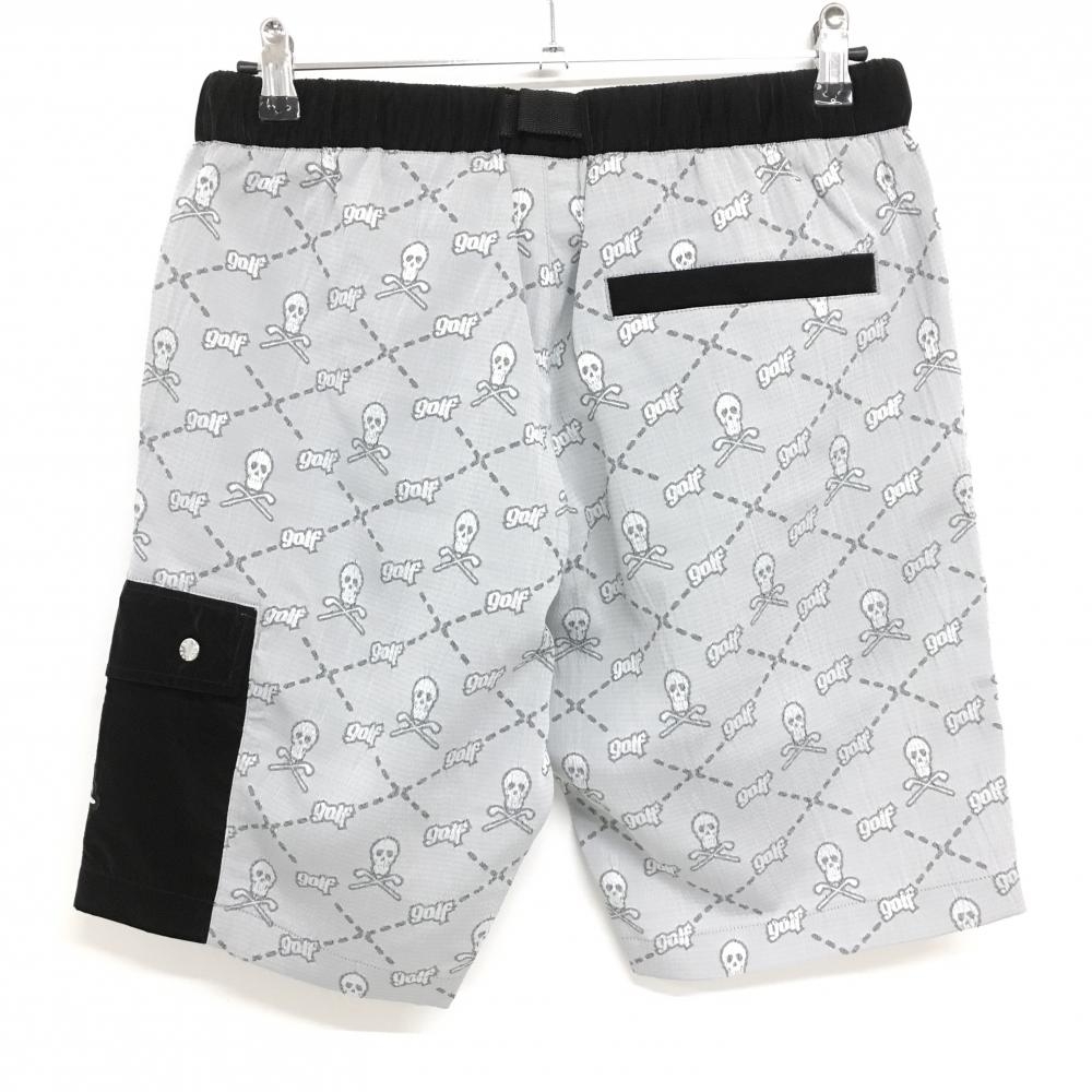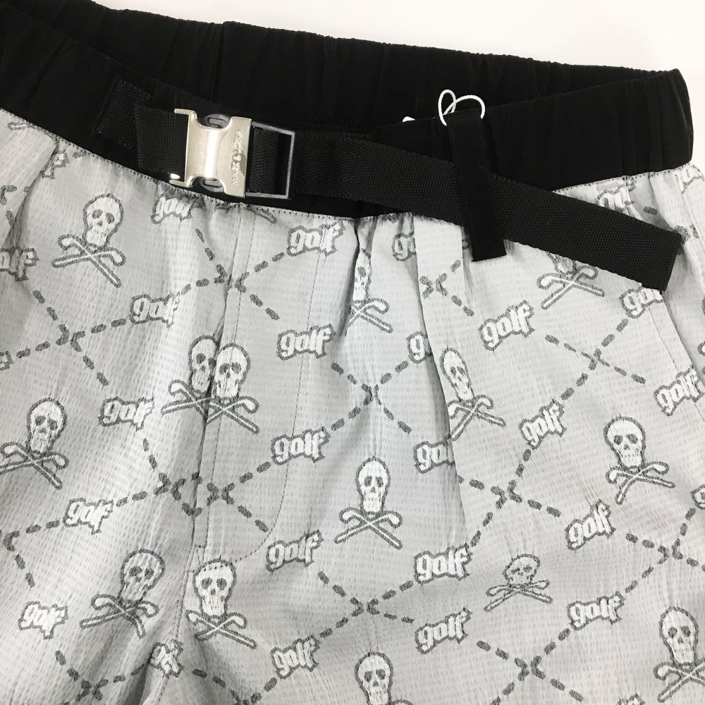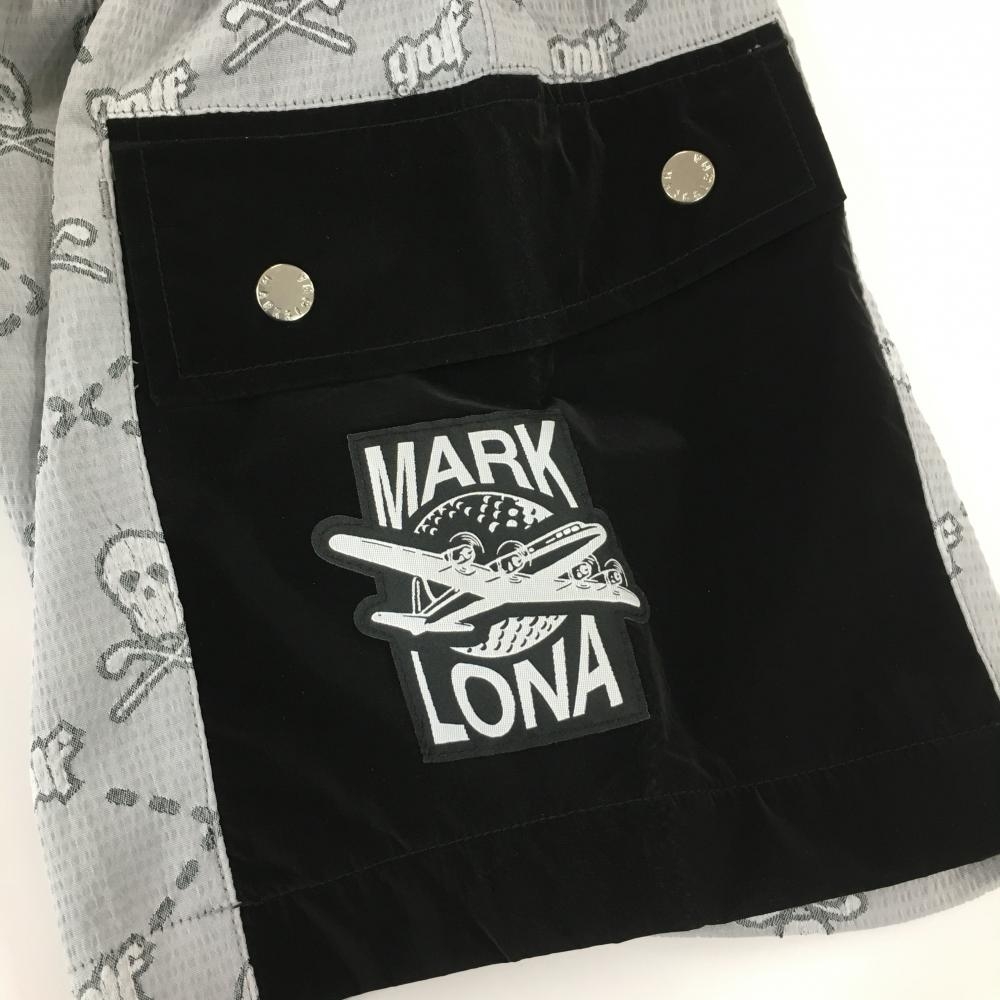 【新品】マークアンドロナ ハーフパンツ グレー×黒 スカル総柄 織生地 薄手 メンズ 44(S) ゴルフウェア 2023年モデル MARK&LONA