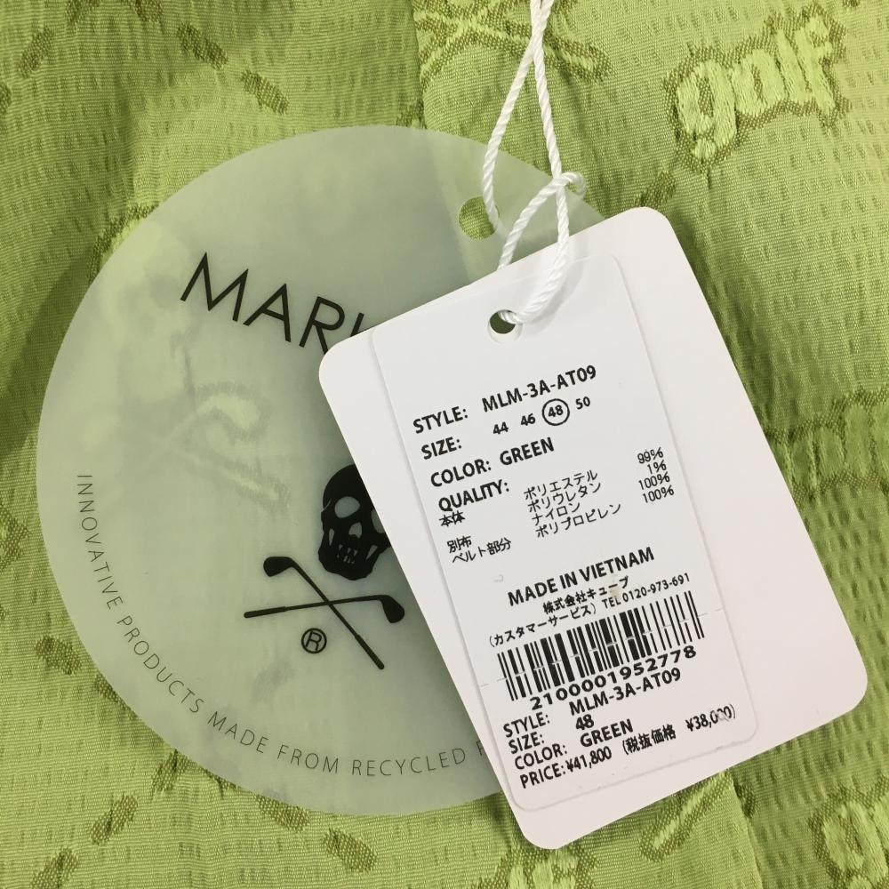 【新品】マークアンドロナ ハーフパンツ ライトグリーン×ネイビー スカル総柄 織生地 メンズ 48(L) ゴルフウェア 2023年モデル MARK&LONA