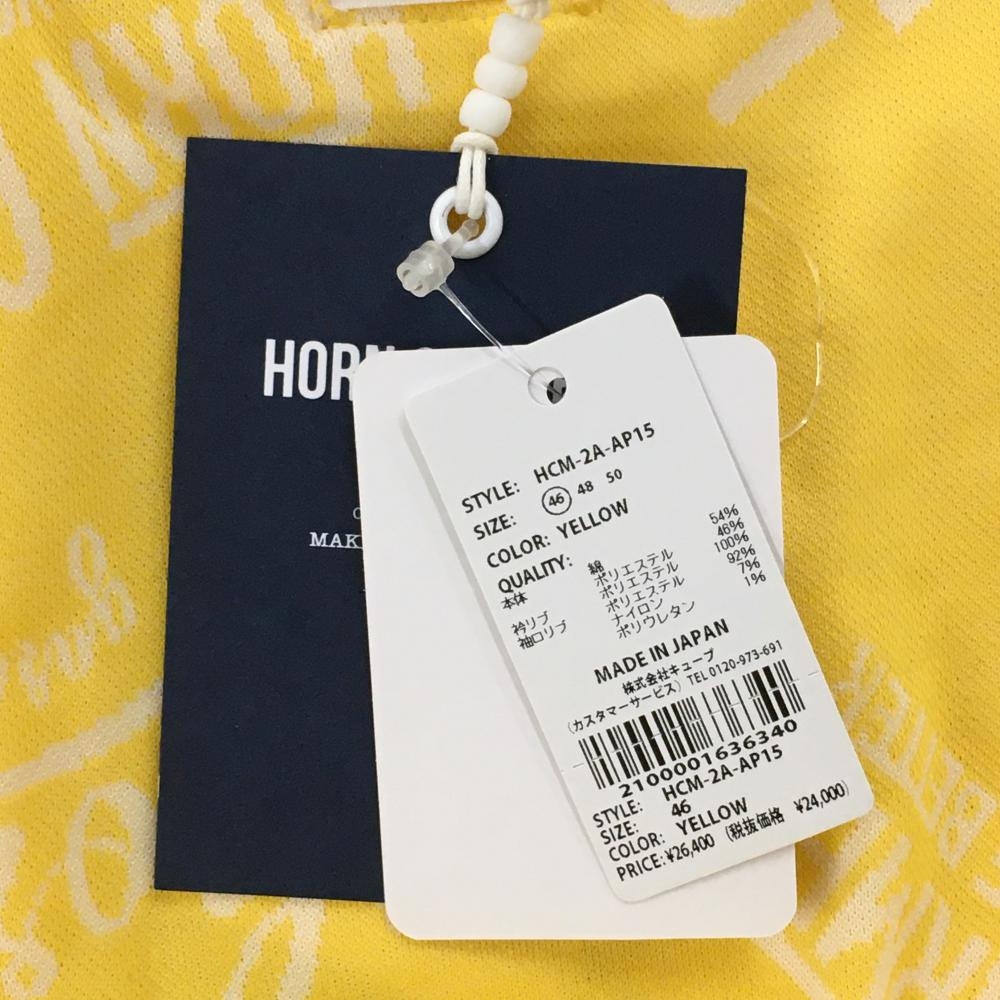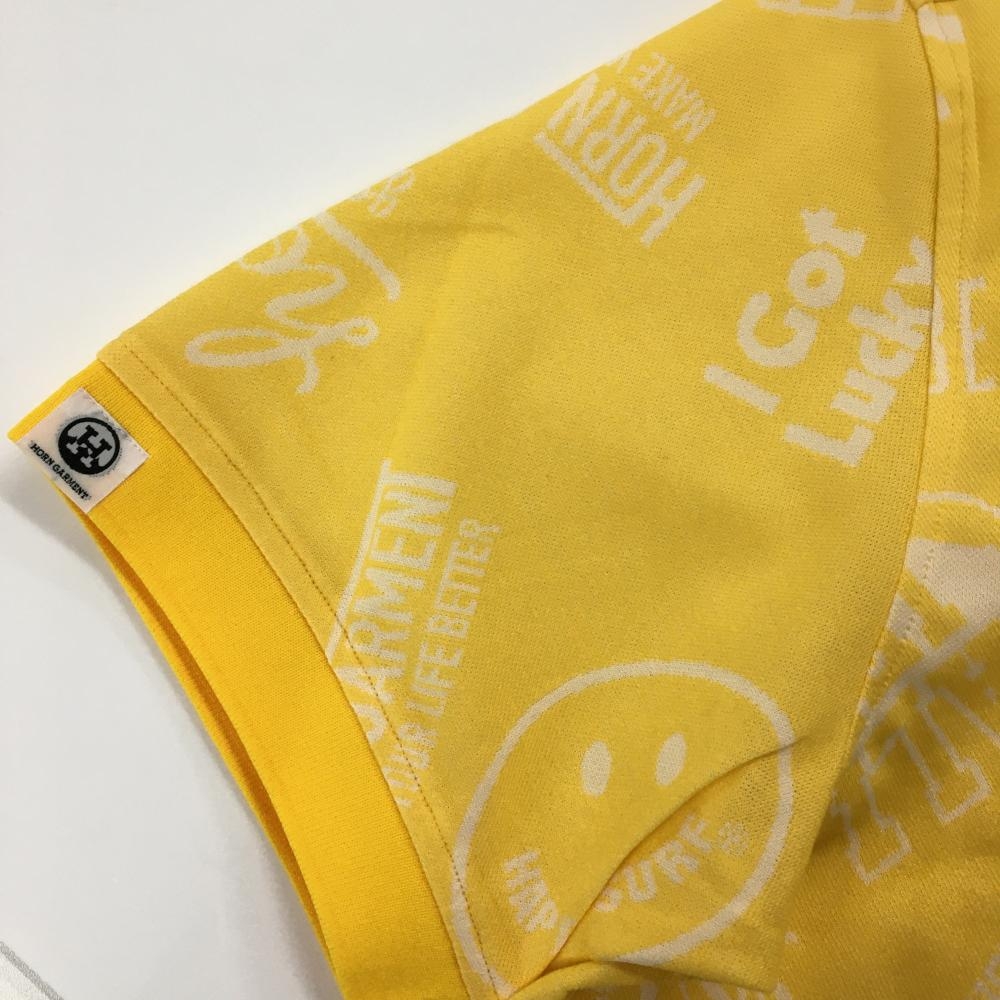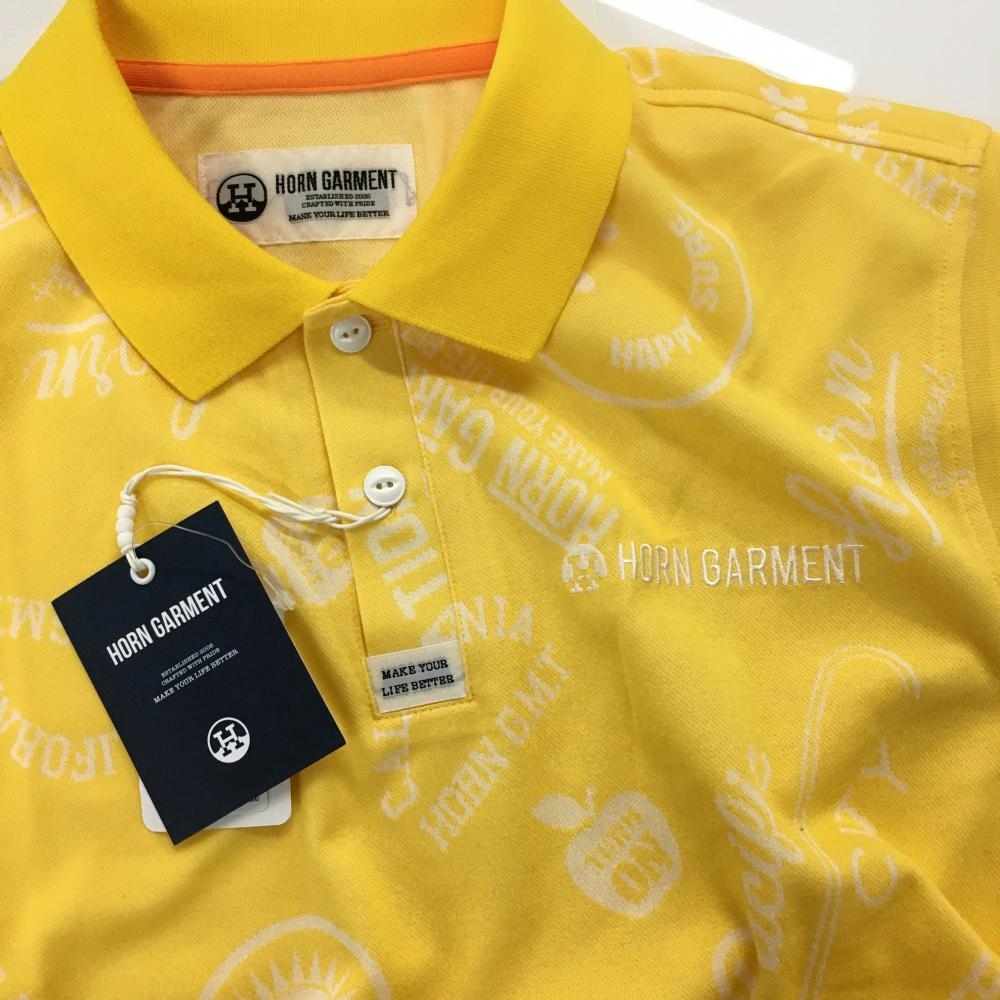 【新品】ホーンガーメント 半袖ポロシャツ イエロー×白 総柄 メンズ 46(M) ゴルフウェア 2022年モデル MARK&LONA