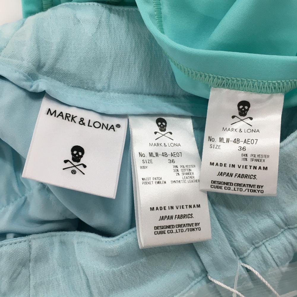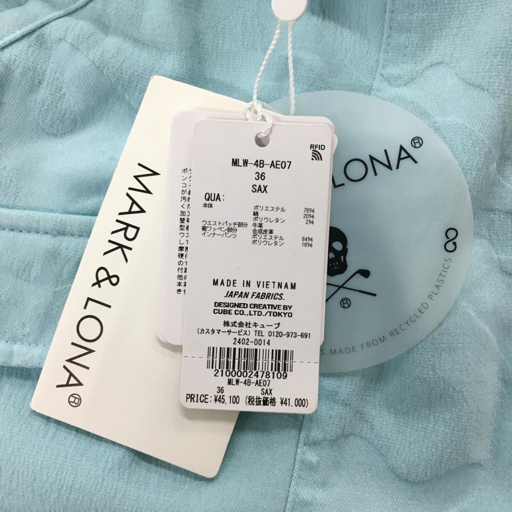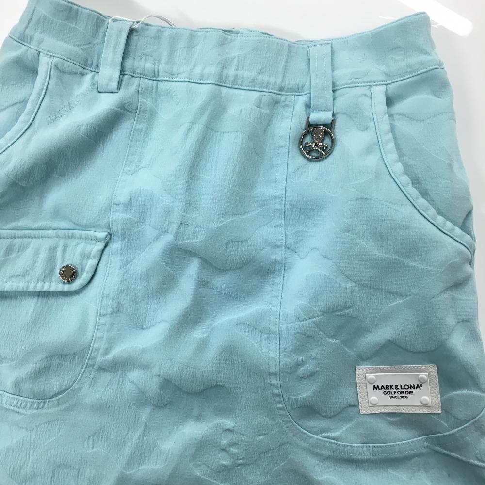 【新品】マークアンドロナ スカート ライトブルー カモフラ柄織生地 迷彩 スカル レディース 36(S) ゴルフウェア 2024年モデル MARK&LONA