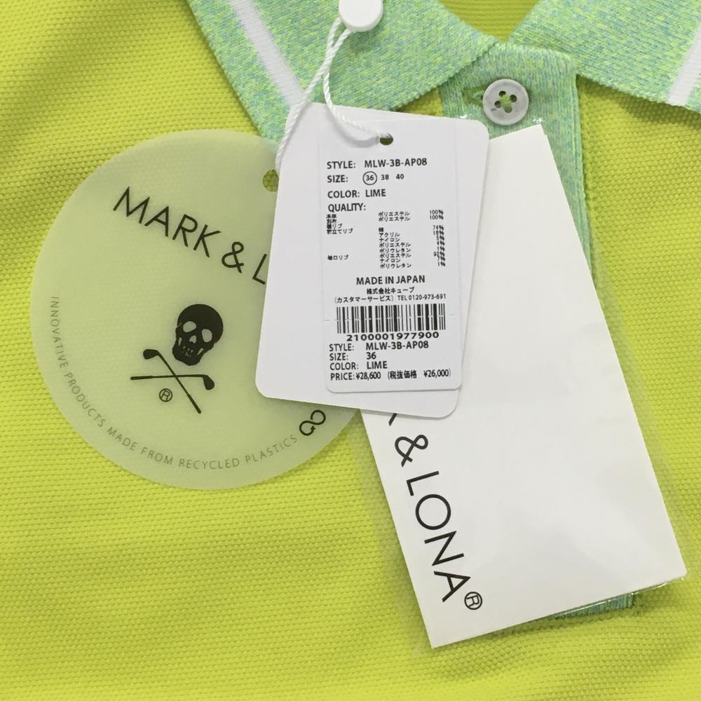 【新品】マークアンドロナ 半袖ポロシャツ イエロー×ライトグリーン レディース 36(S) ゴルフウェア 2023年モデル MARK&LONA
