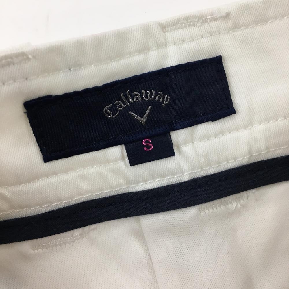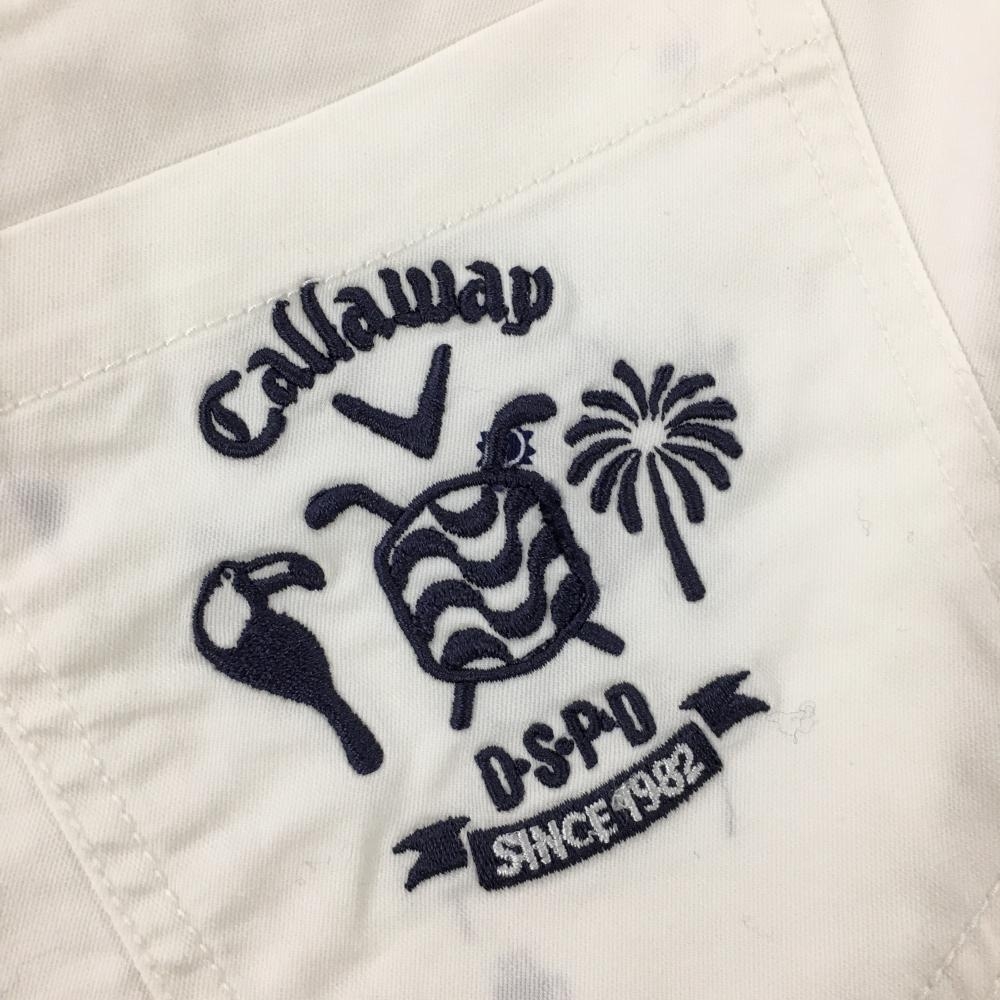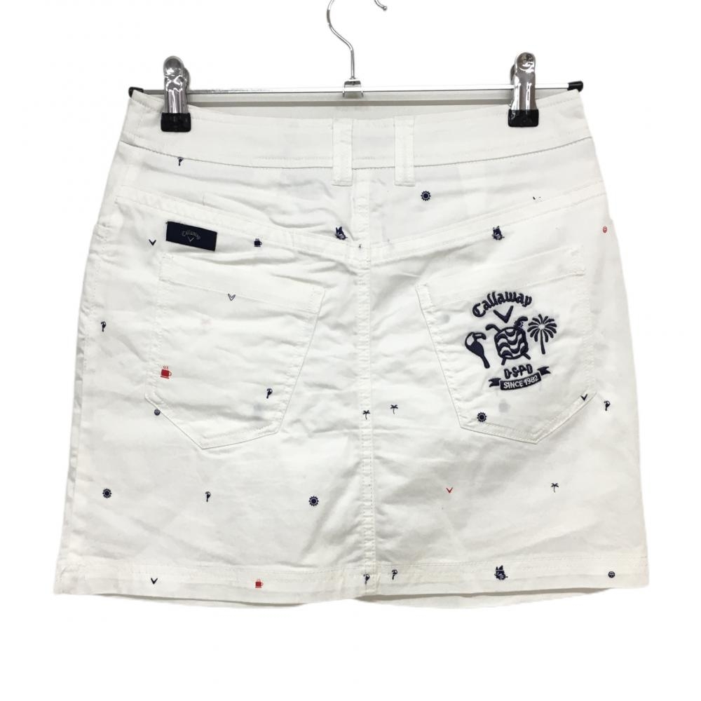 【美品】キャロウェイ スカート 白×ネイビー 総柄 ヤシの木 内側インナーパンツ 後ろ裾汚れ小 レディース S ゴルフウェア Callaway
