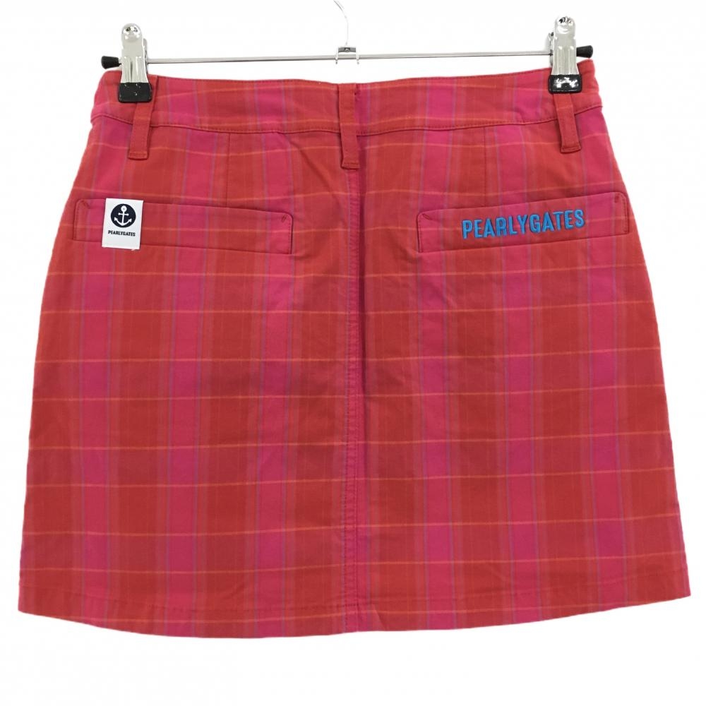 【美品】パーリーゲイツ スカート レッド×ピンク チェック ストレッチ レディース 0(S) ゴルフウェア PEARLY GATES
