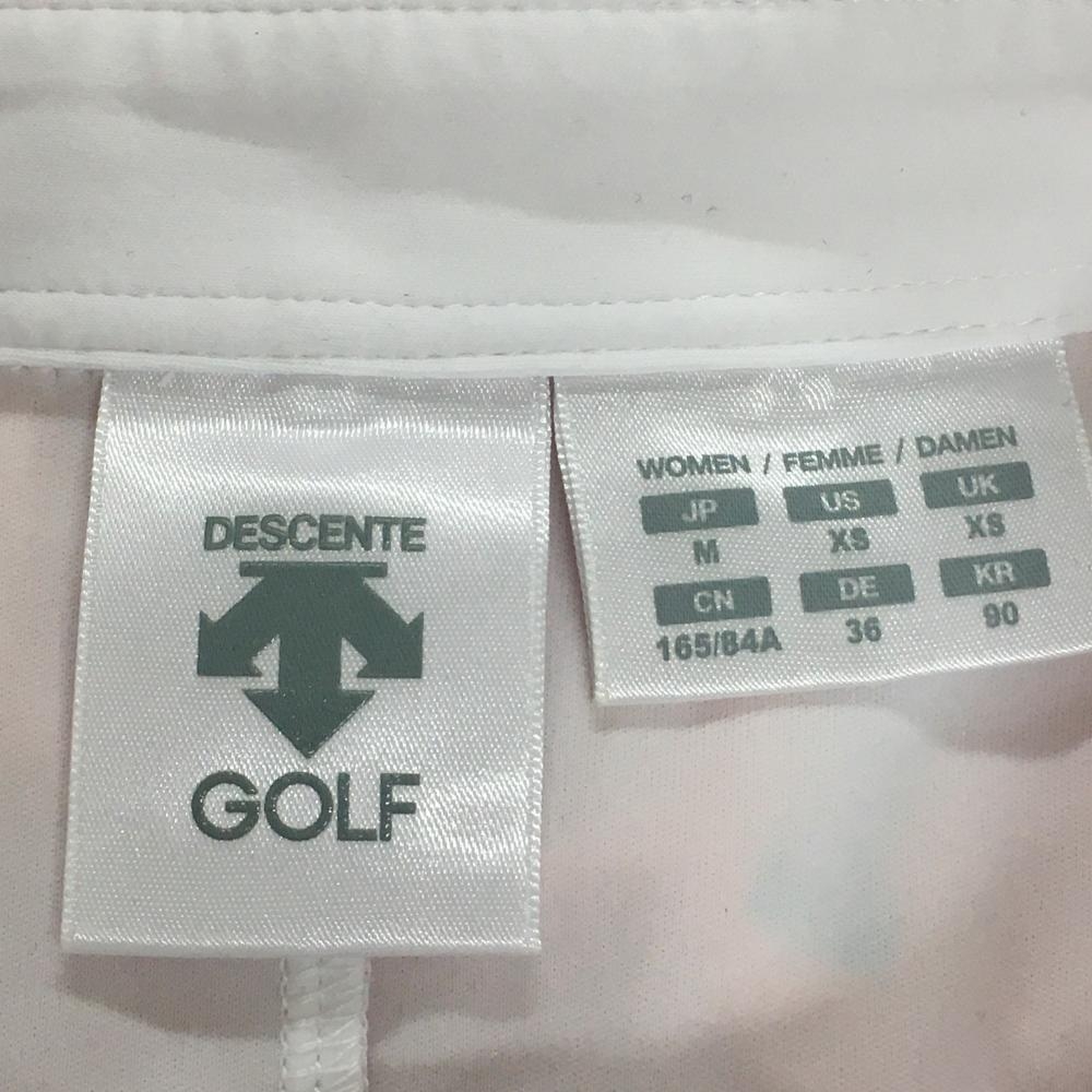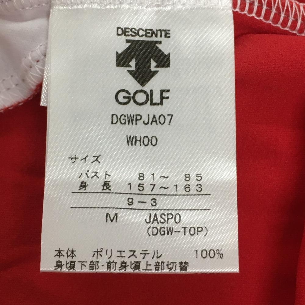 【超美品】デサントゴルフ 半袖ポロシャツ 白×レッド ロゴゴールド ハーフジップ 中田英寿 レディース M ゴルフウェア DESCENTE