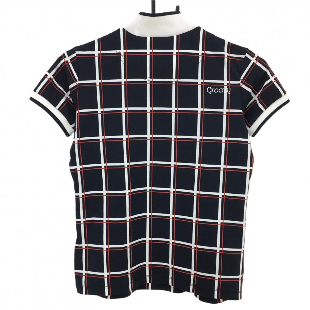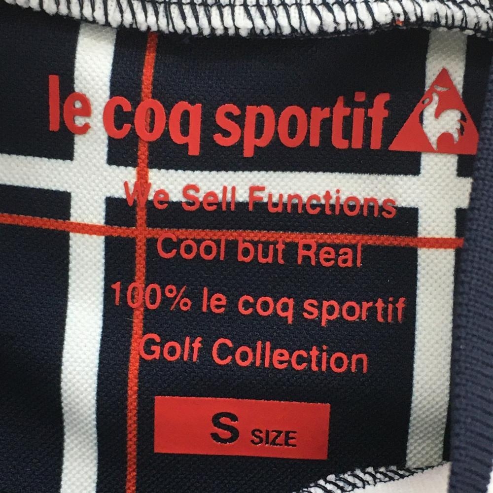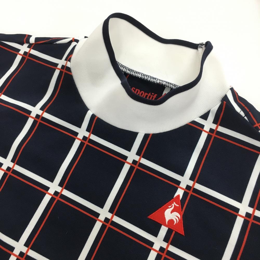 【超美品】ルコック 半袖ハイネックシャツ ネイビー×白 チェック レディース S ゴルフウェア le coq sportif