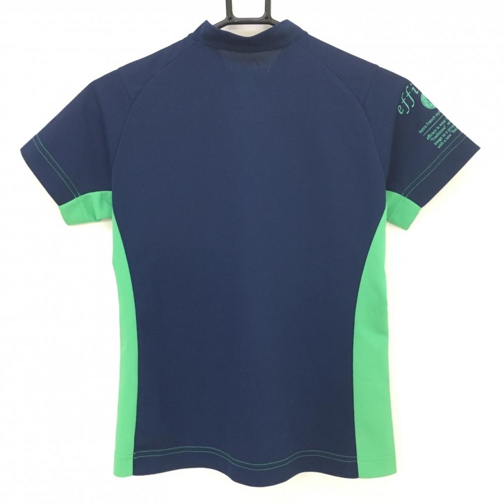 【超美品】エフィカス 半袖シャツ ネイビー×グリーン サイド切替 レディース S ゴルフウェア efficace