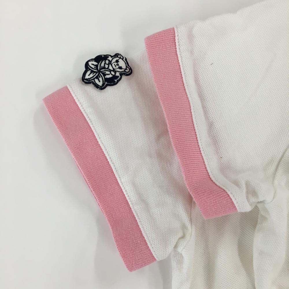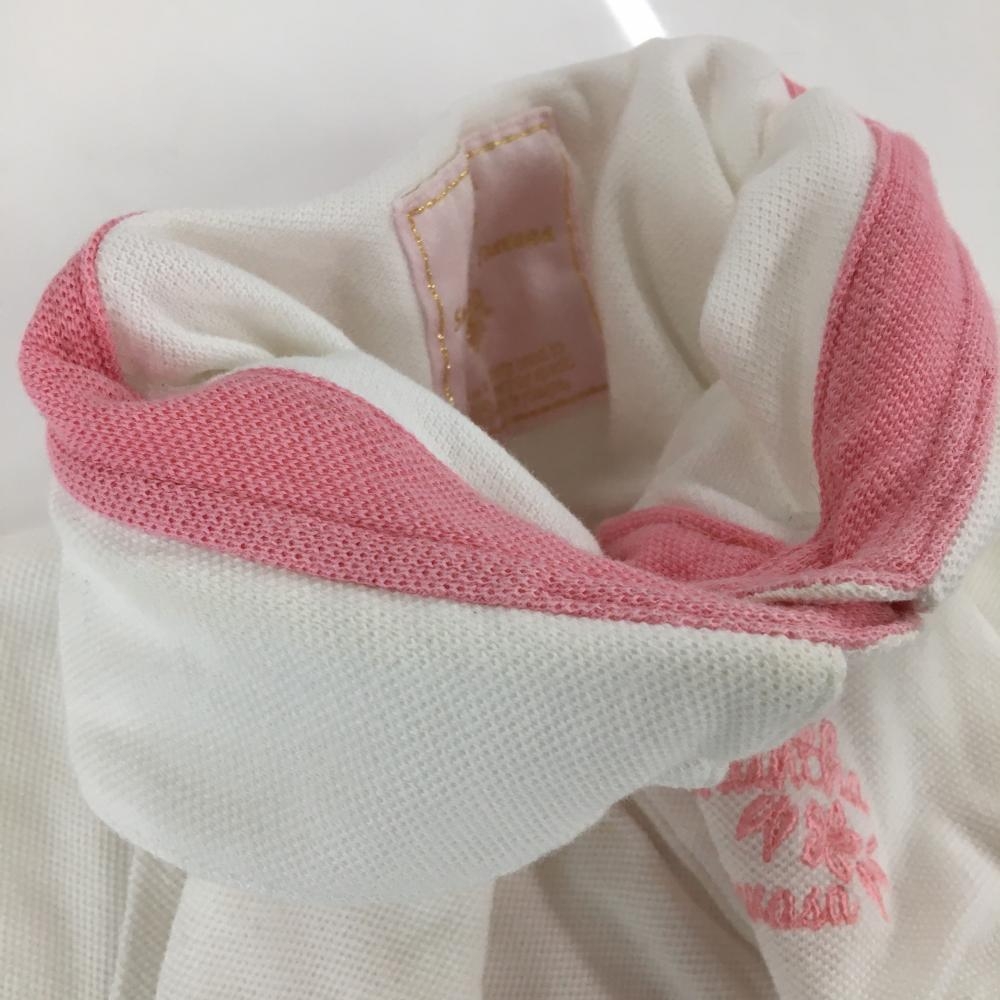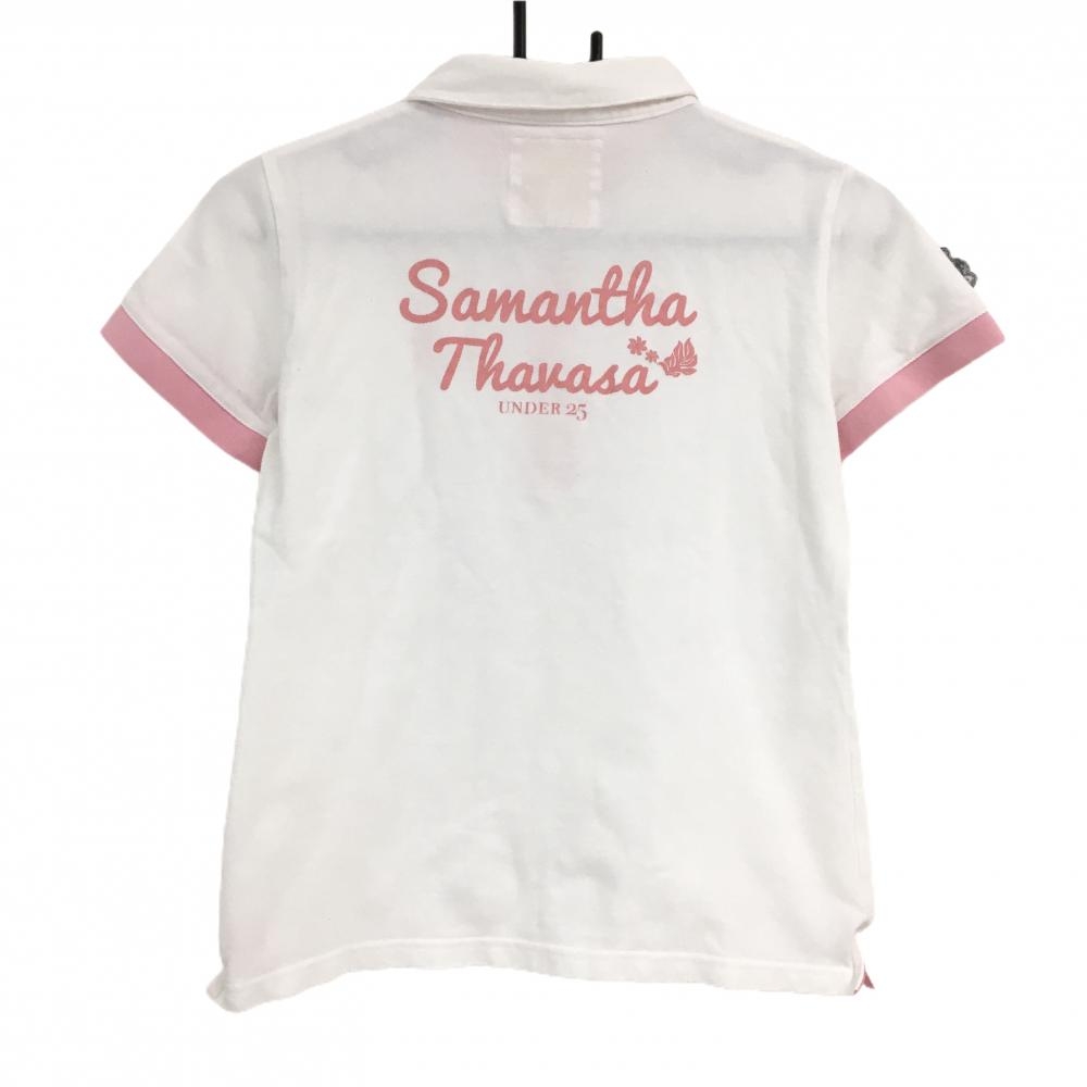 サマンサタバサ 半袖ポロシャツ 白×ピンク バックロゴ レディース M ゴルフウェア Samantha Thavasa