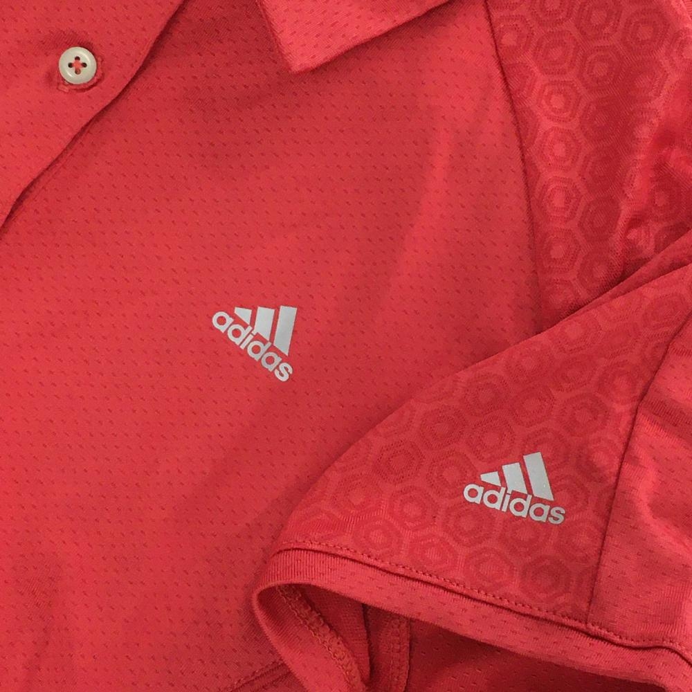 【超美品】アディダス 半袖ポロシャツ レッド 織生地 クリマクール 後ろ3ライン レディース L/G ゴルフウェア adidas