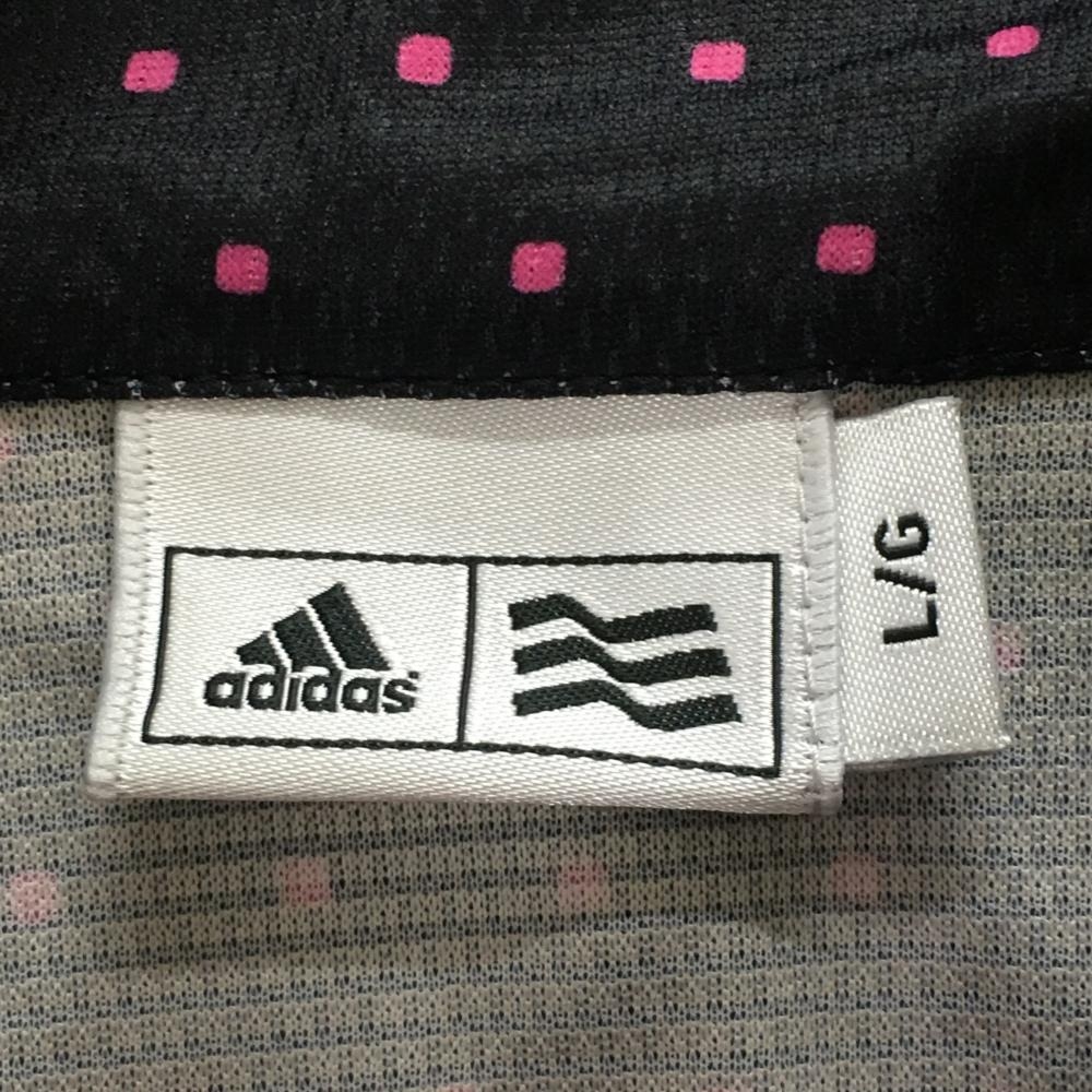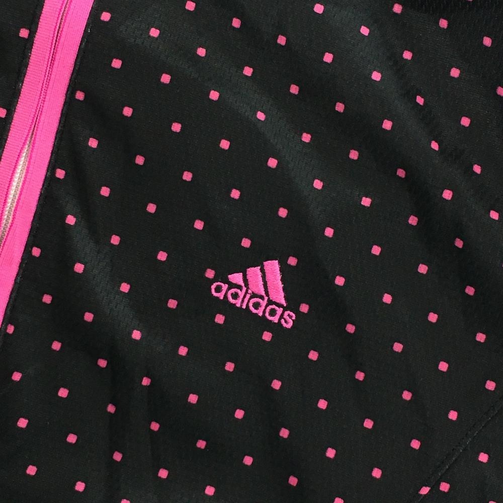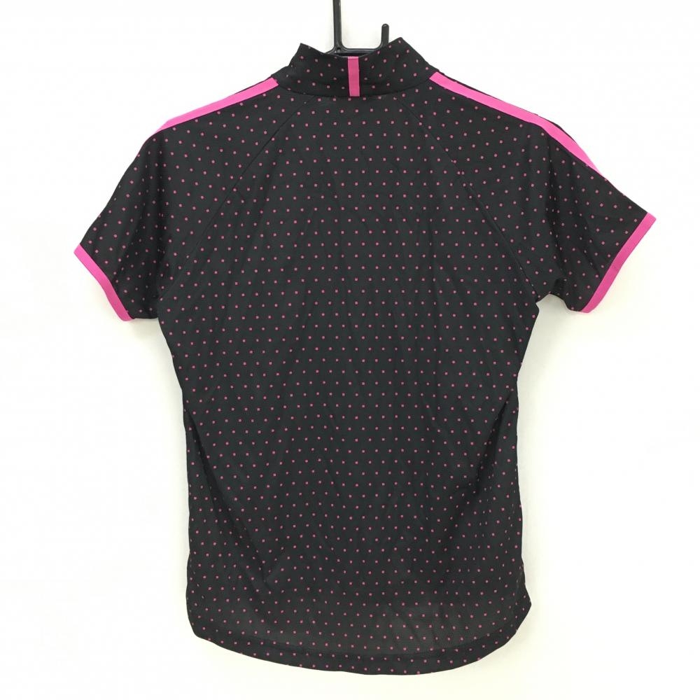 【超美品】アディダス 半袖ハイネックシャツ 黒×ピンク スクエアドット ハーフジップ レディース L/G ゴルフウェア adidas