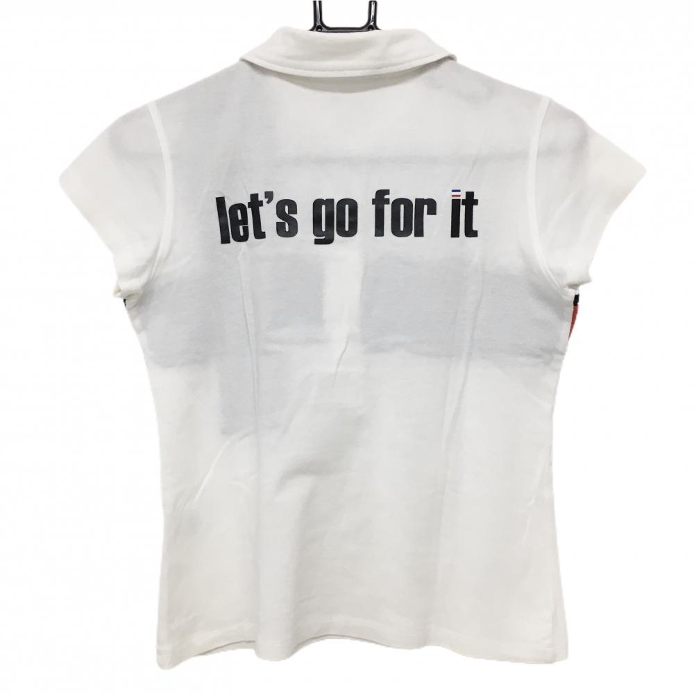 ルコック 半袖ポロシャツ 白×レッド 前面クロス柄 ロゴ刺しゅう レディース M ゴルフウェア le coq sportif