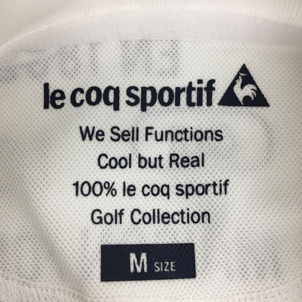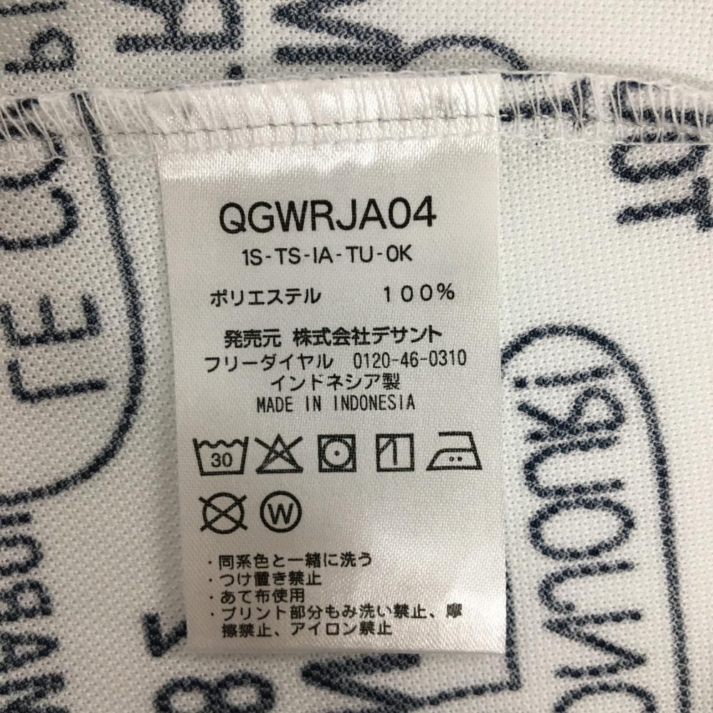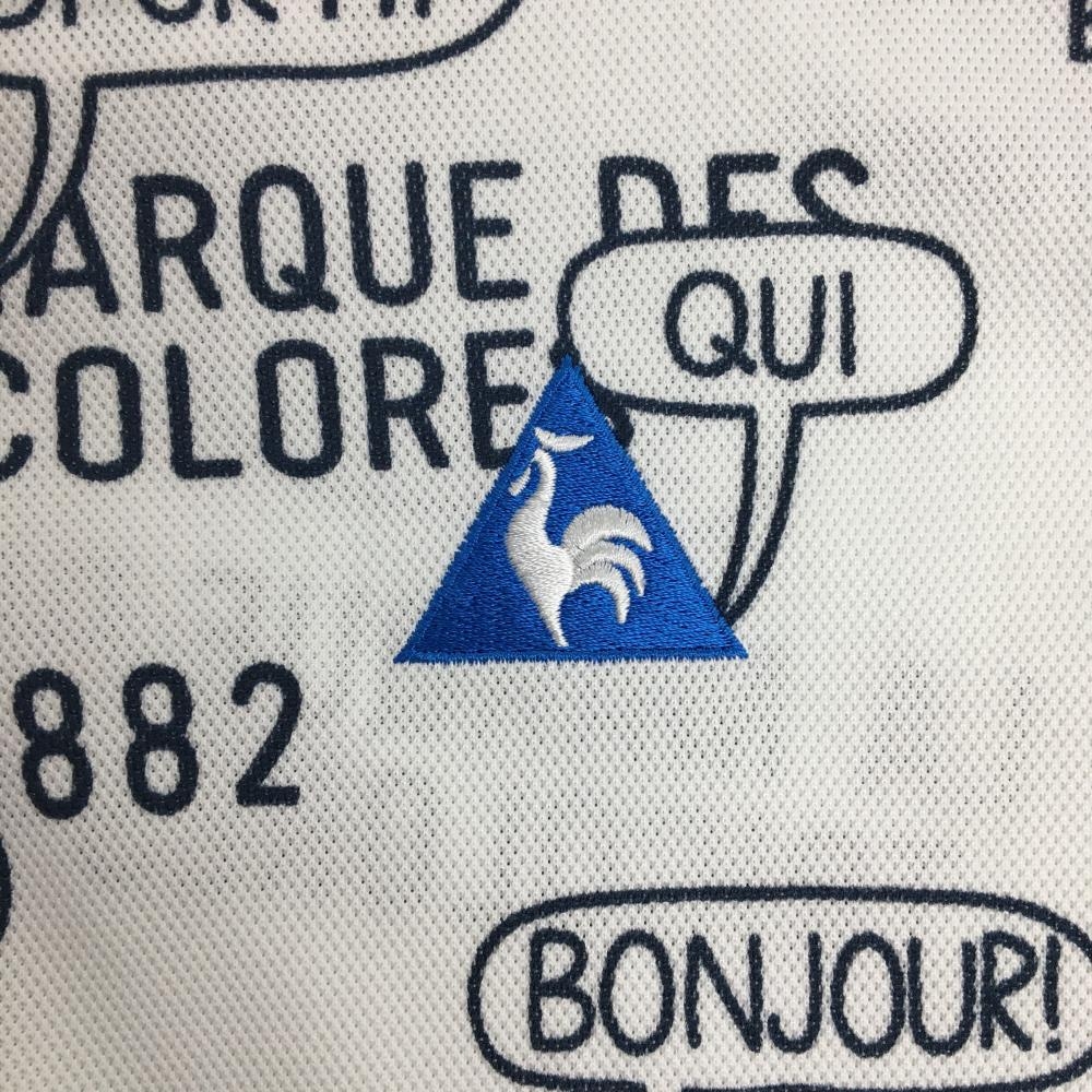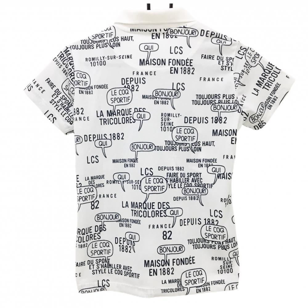 【美品】ルコックゴルフ 半袖ポロシャツ 白×ネイビー 英字総柄 レディース M ゴルフウェア le coq sportif