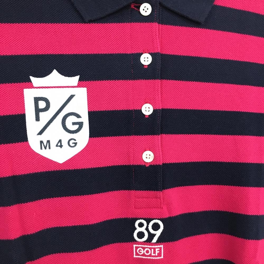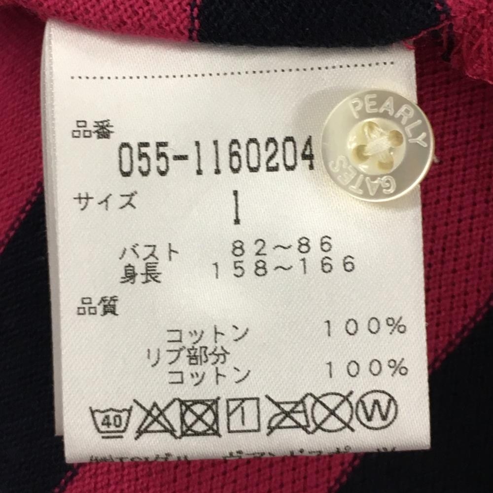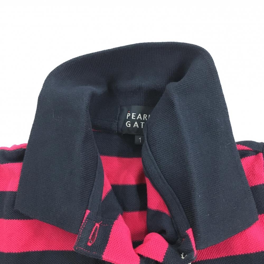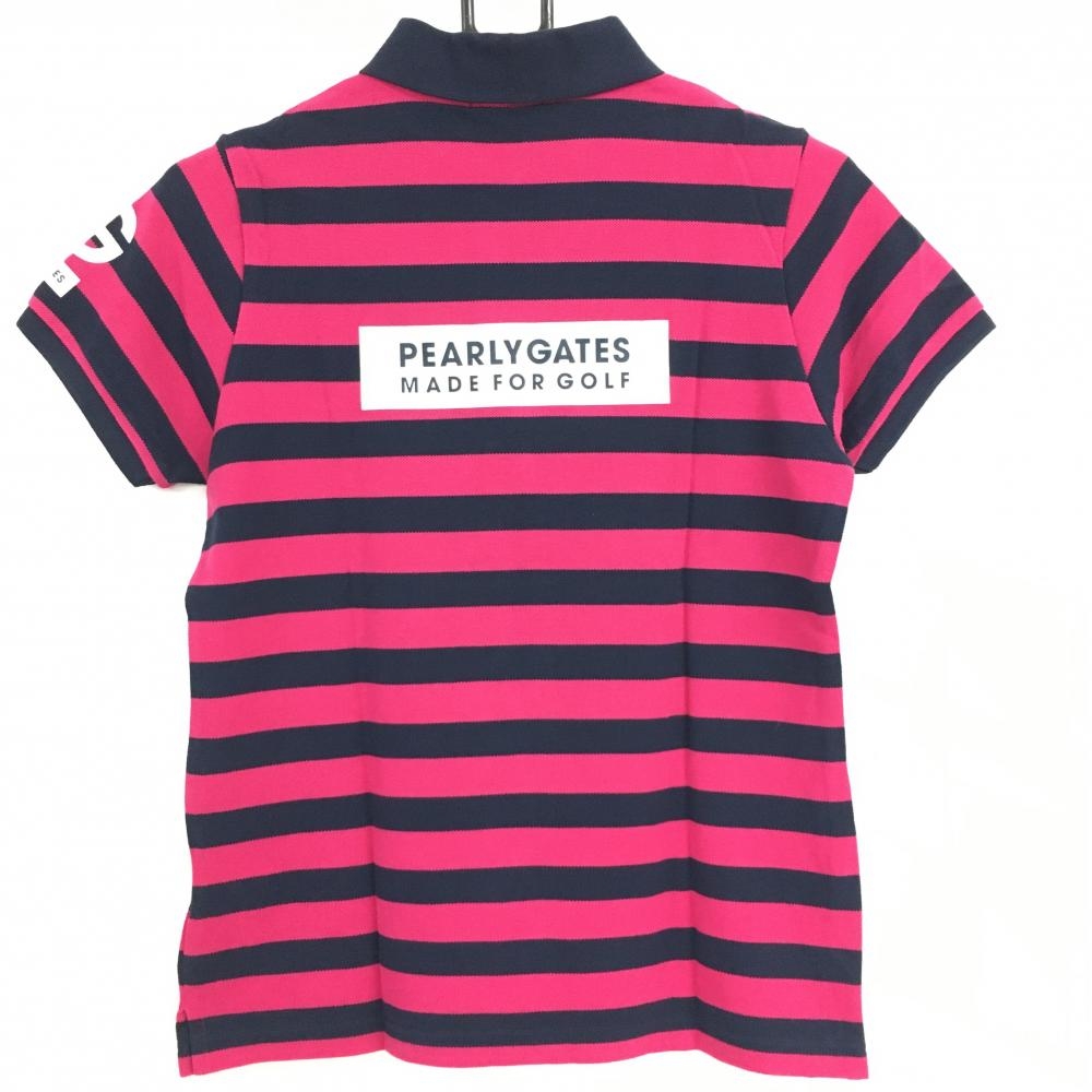 パーリーゲイツ 半袖ポロシャツ ネイビー×ピンク ボーダー レディース 1(M) ゴルフウェア PEARLY GATES