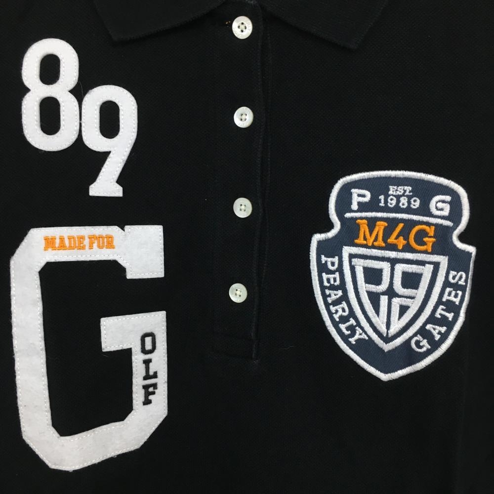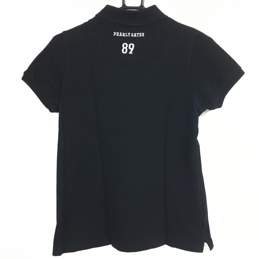 パーリーゲイツ 半袖ポロシャツ 黒×白 フェルト 刺しゅうワッペン レディース 0(S) ゴルフウェア PEARLY GATES