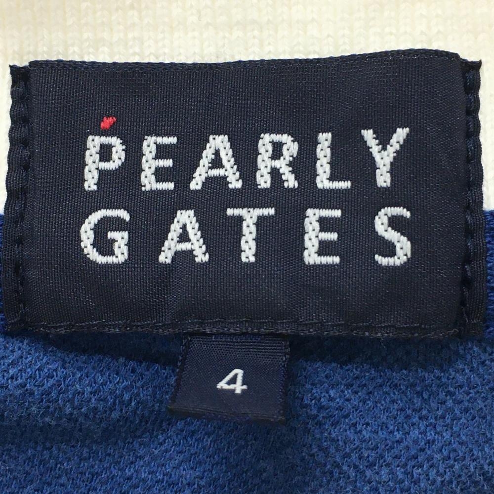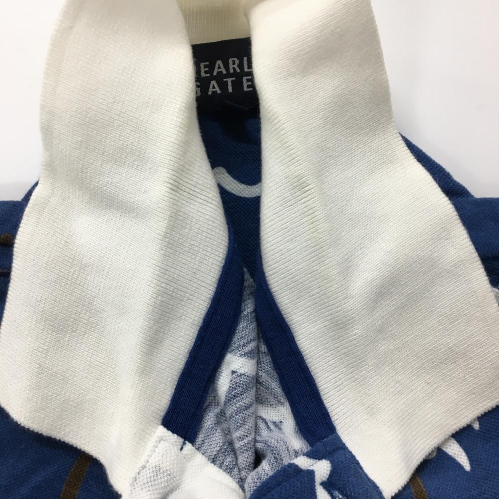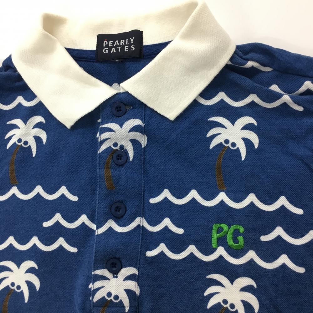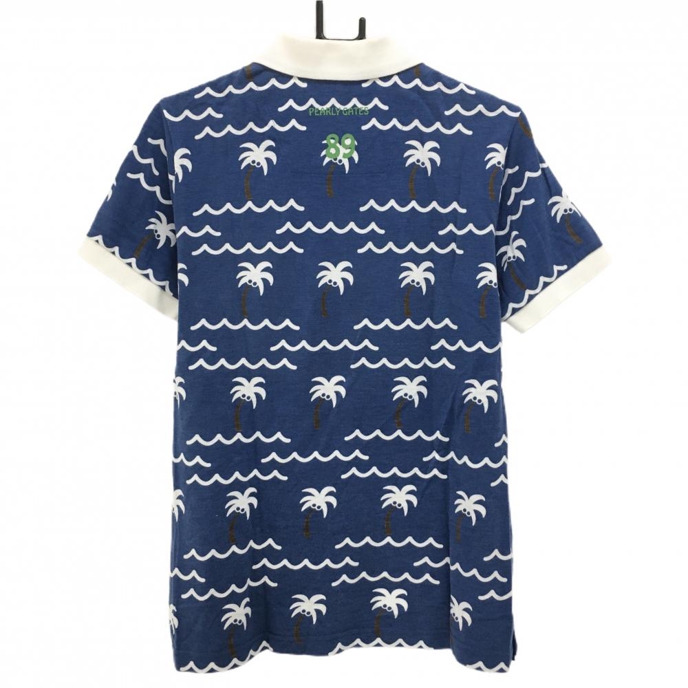 パーリーゲイツ 半袖ポロシャツ ネイビー×白 ヤシの木柄 メンズ 4(M) ゴルフウェア PEARLY GATES