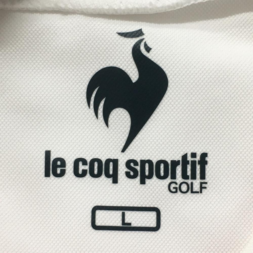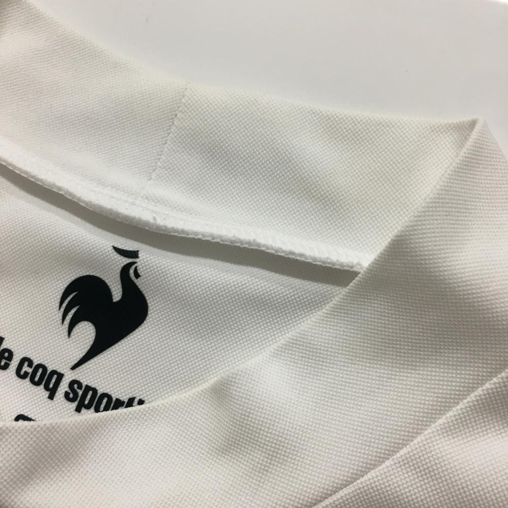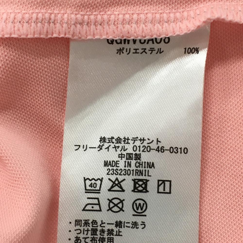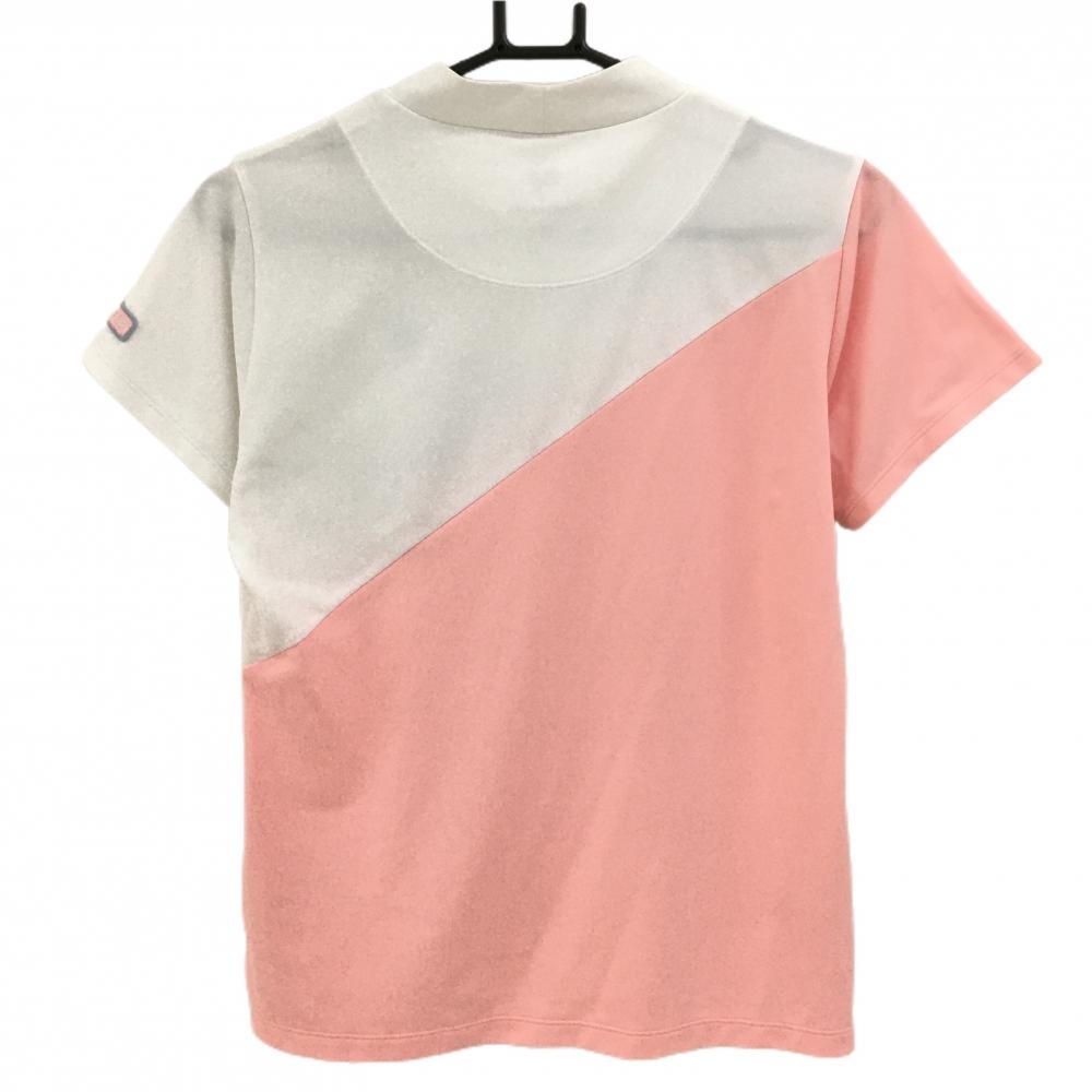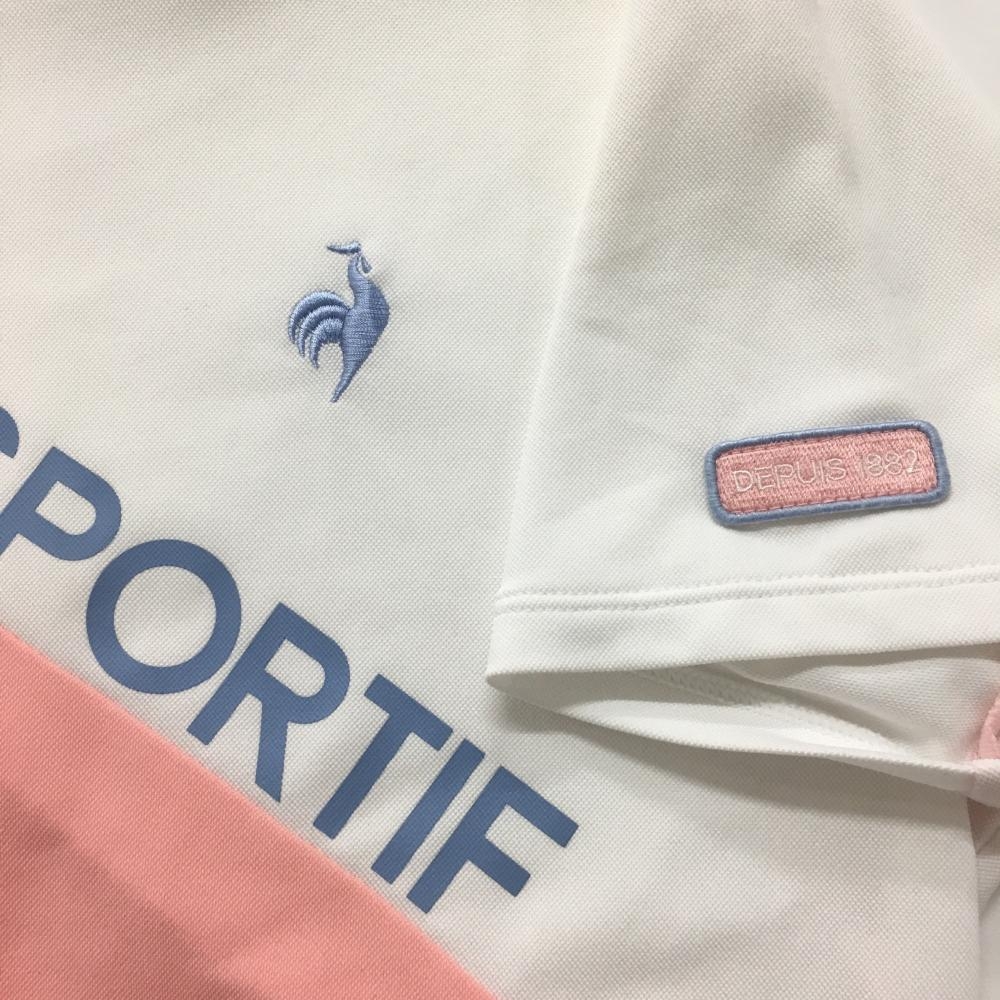 ルコックゴルフ 半袖ハイネックシャツ ライトピンク×白 斜めロゴプリント レディース L ゴルフウェア le coq sportif